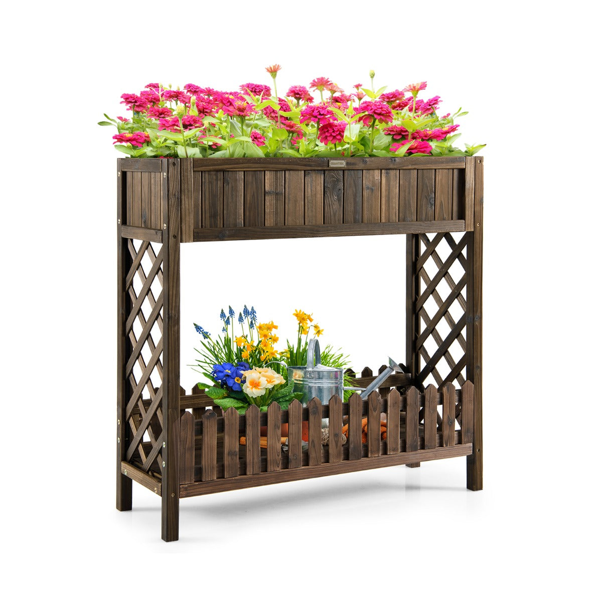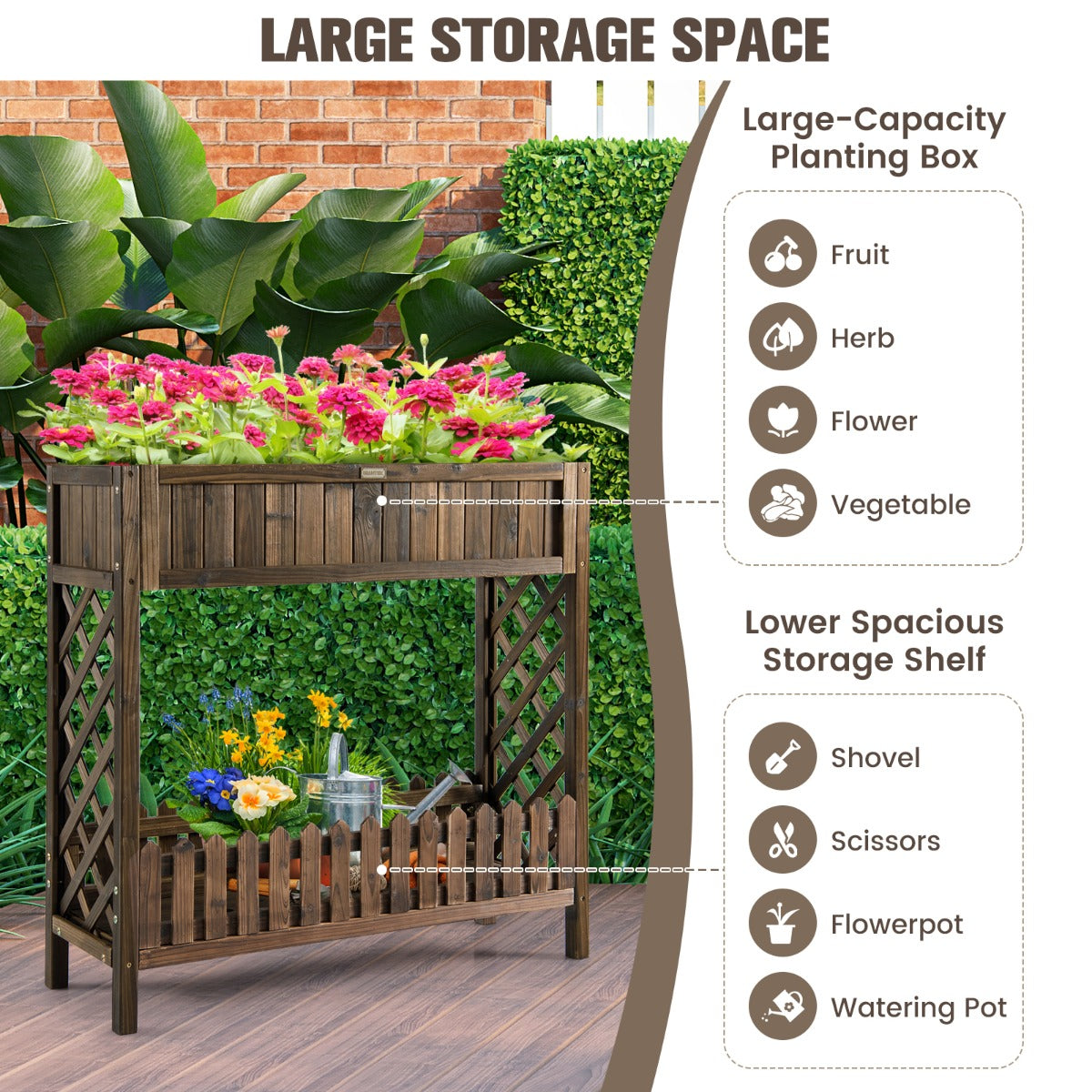 NNECW Garden Elevated Planter Box with Storage Shelf for Outdoor