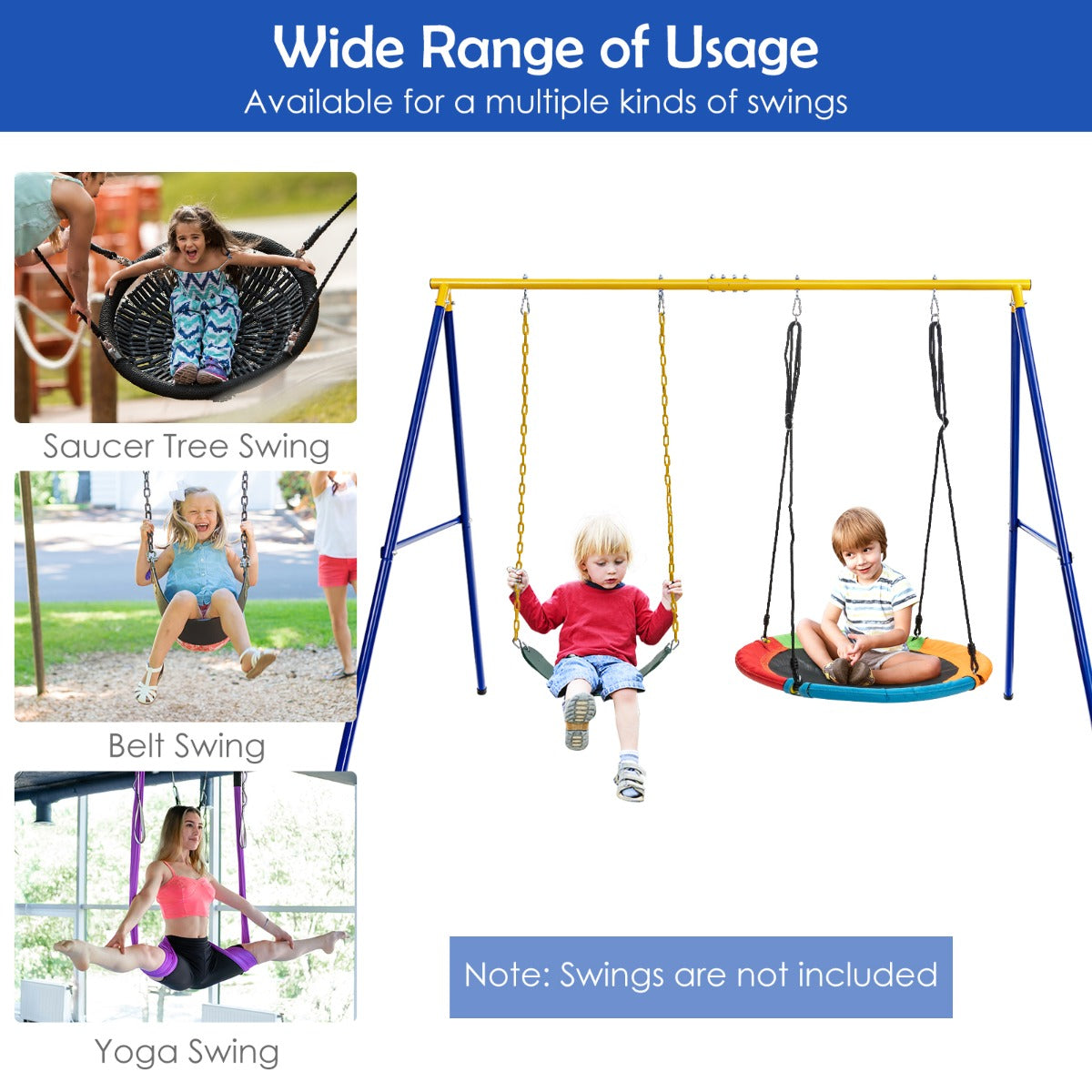 Wide Range of Usage: This extra-wide swing frame is available for multiple kinds of swings, like saucer tree swing, belt swing, yoga swing and so on. And one thing that should be mentioned is that swings are not included in the package. You can choose suitable swings on your own. And the swing frame is perfect for both indoor and outdoor use.