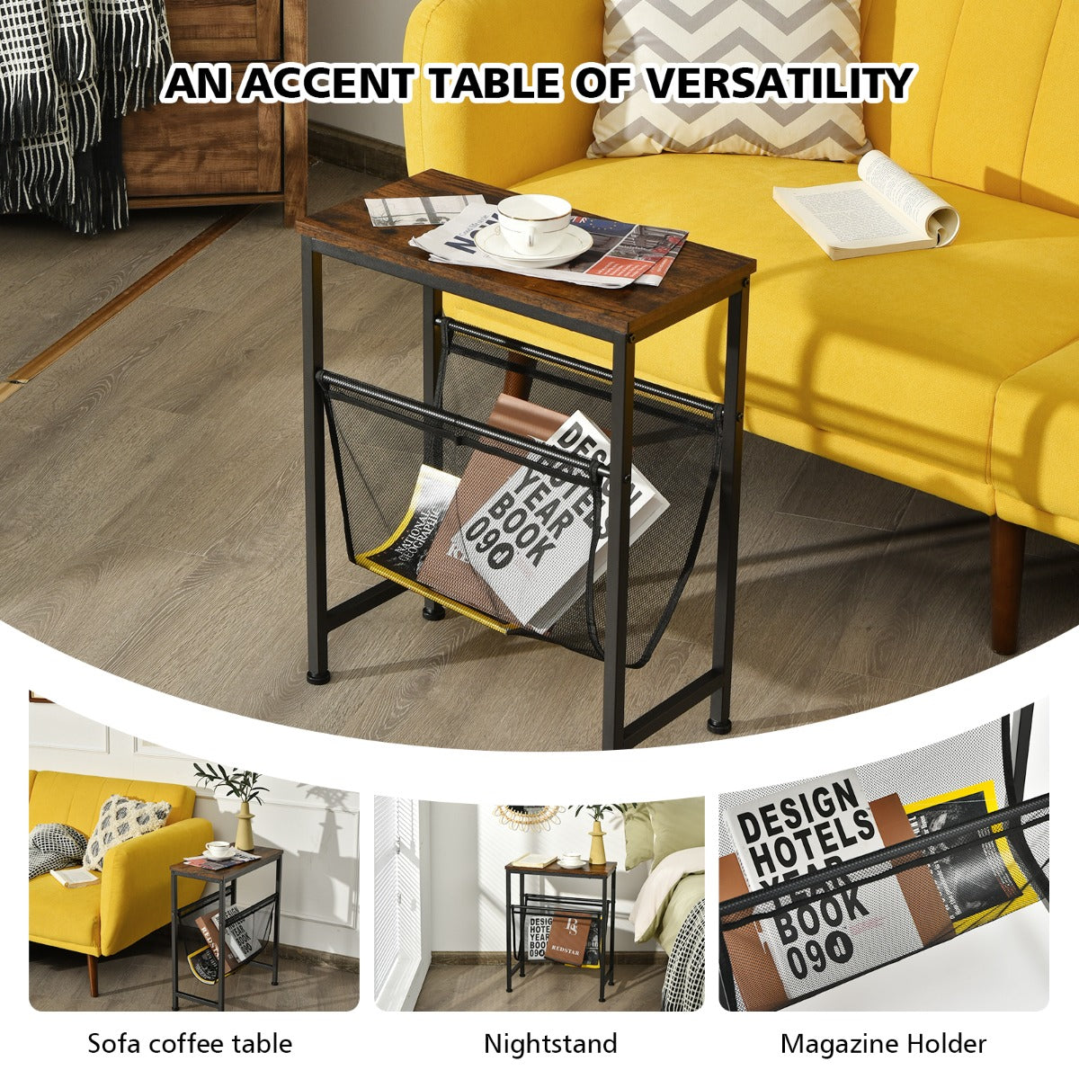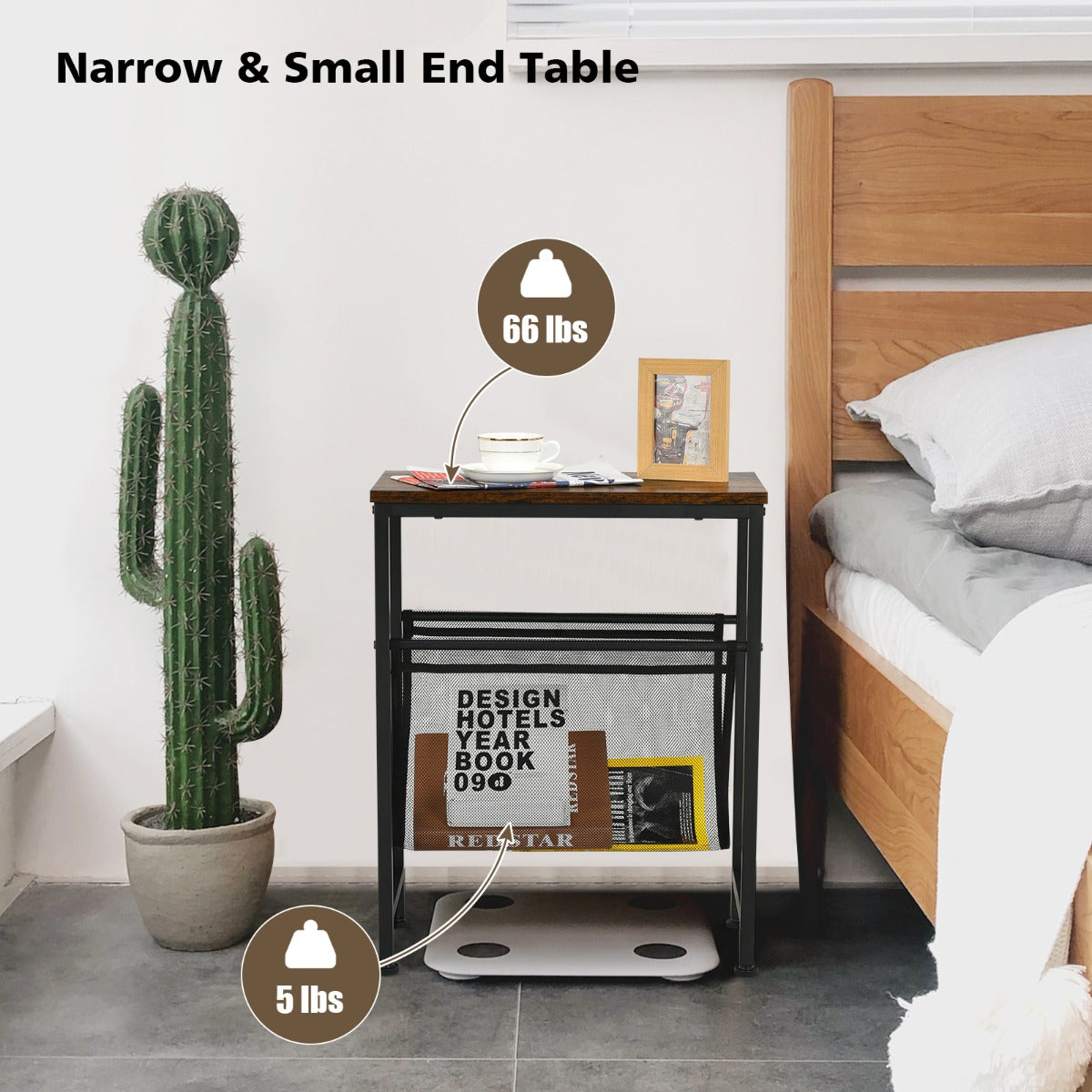 NNECW Industrial End Table with Mesh Magazine Holder Sling for Living Room/Bedroom