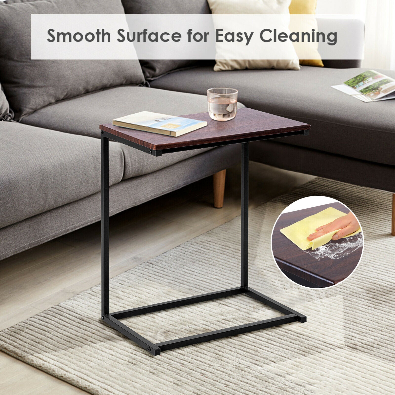NNECW Industrial Styled C Shaped Side End Table-Coffee