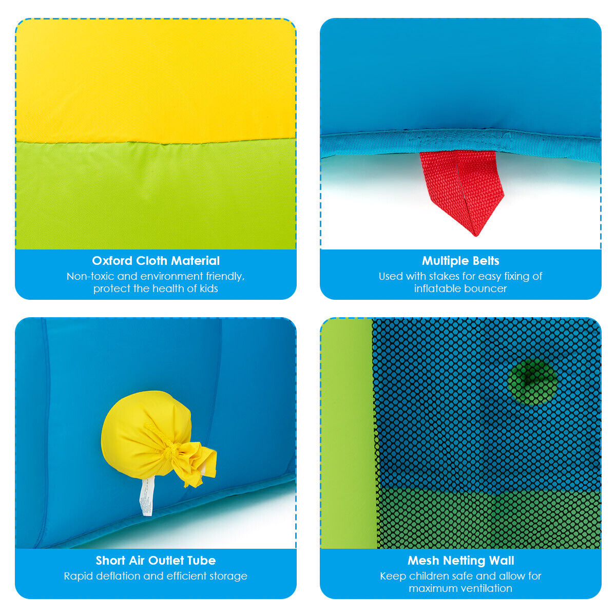 Durable Materials and Safe Design: Made of premium oxford materials, which are wear resistant. Combined with premium sewing techniques, this inflatable water park will provide a continuous bounce for children. The jumping area is surrounded by mesh walls to ensure the safety of children while playing and allow for maximum ventilation.