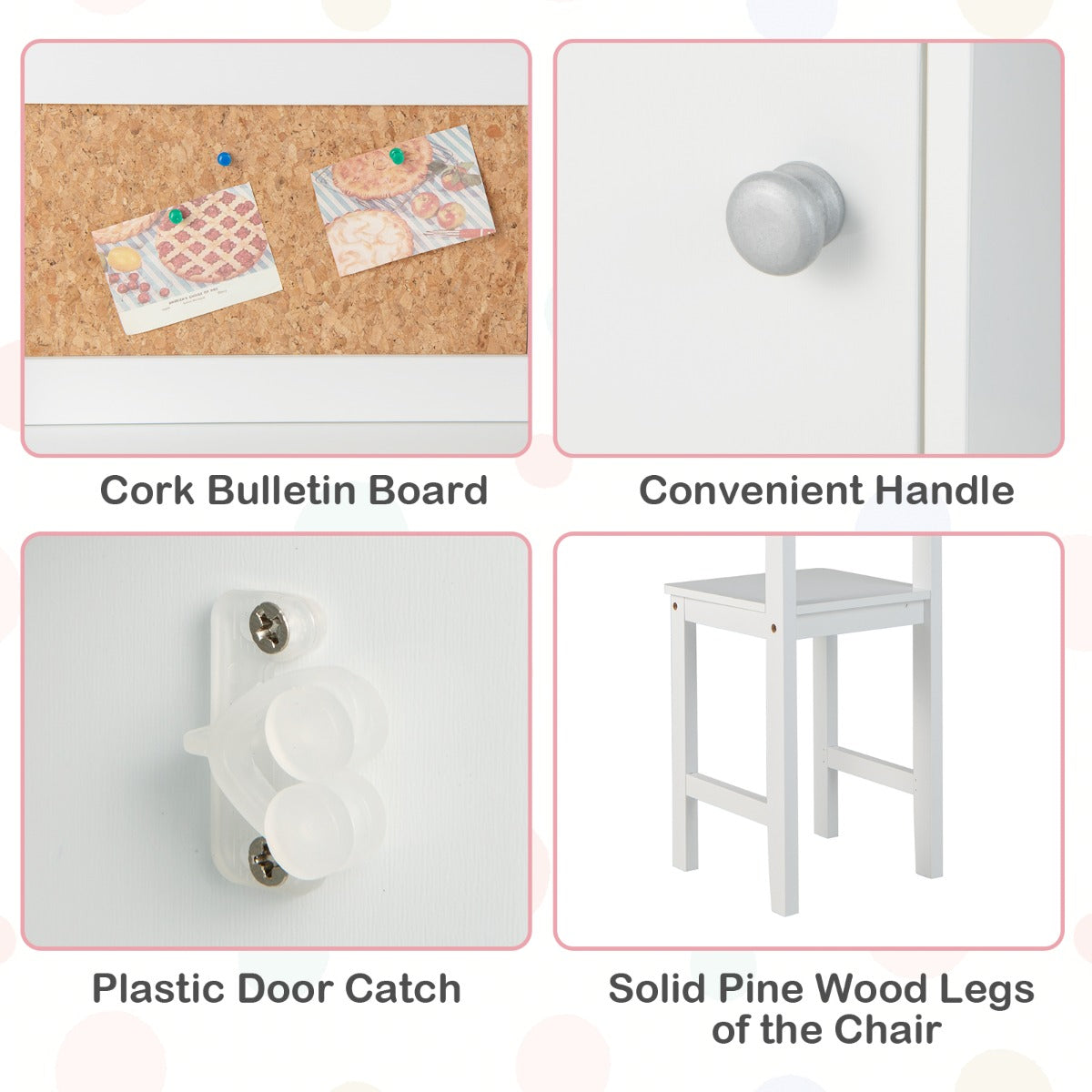 Abundant Study & Storage Space: The spacious tabletop offers children enough space to study. Moreover, the cork bulletin board allows kids to pin notes and pictures. 2 dividers on the tabletop and 1 open compartment under the tabletop bring extra storage space. Meanwhile, the cabinet with door holds personal belongings for privacy.