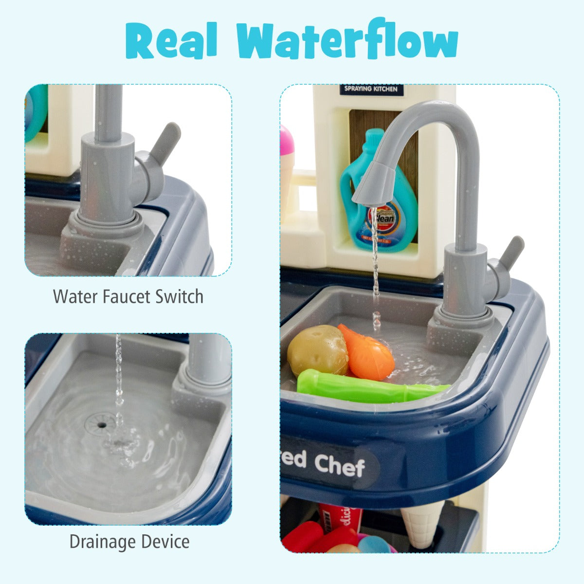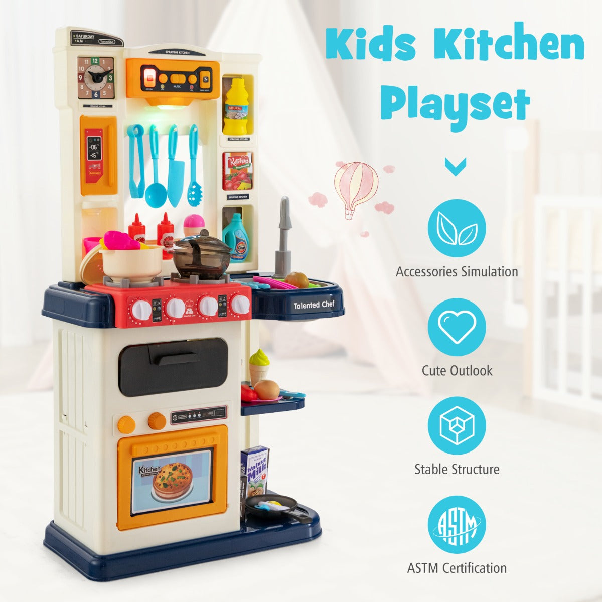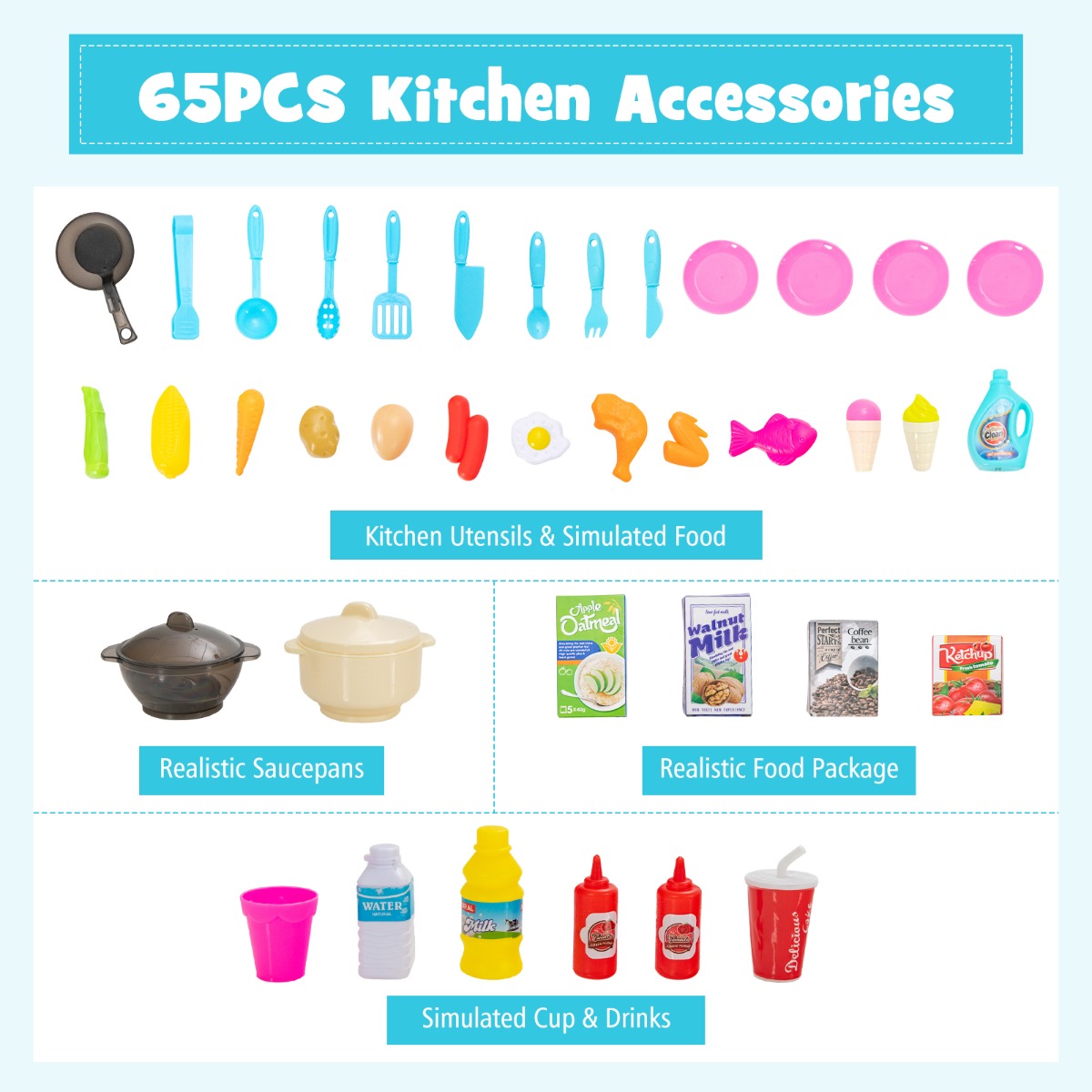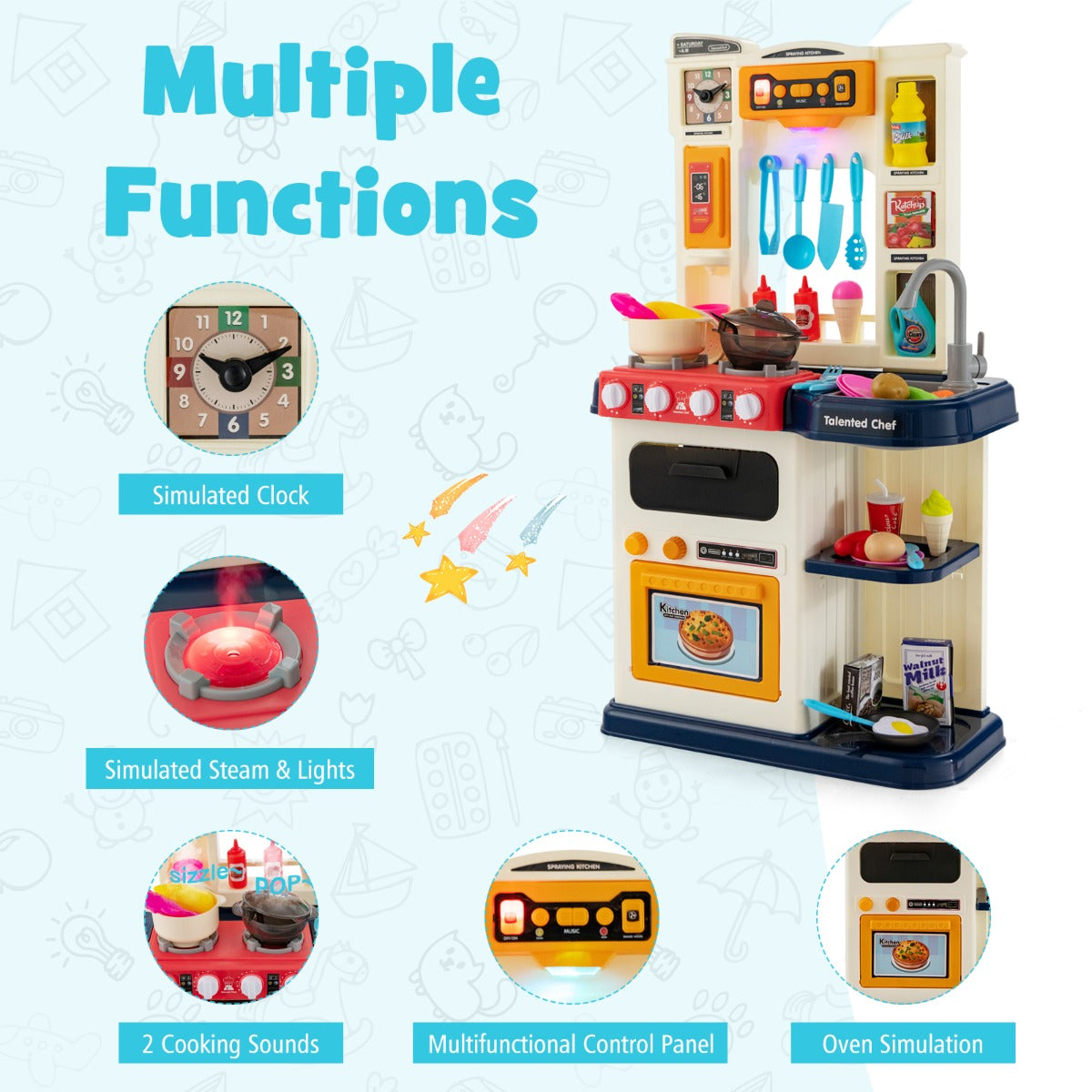 NNECW Kids Play Kitchen Set with 65 Pieces Accessories & Pretend Steam-Blue