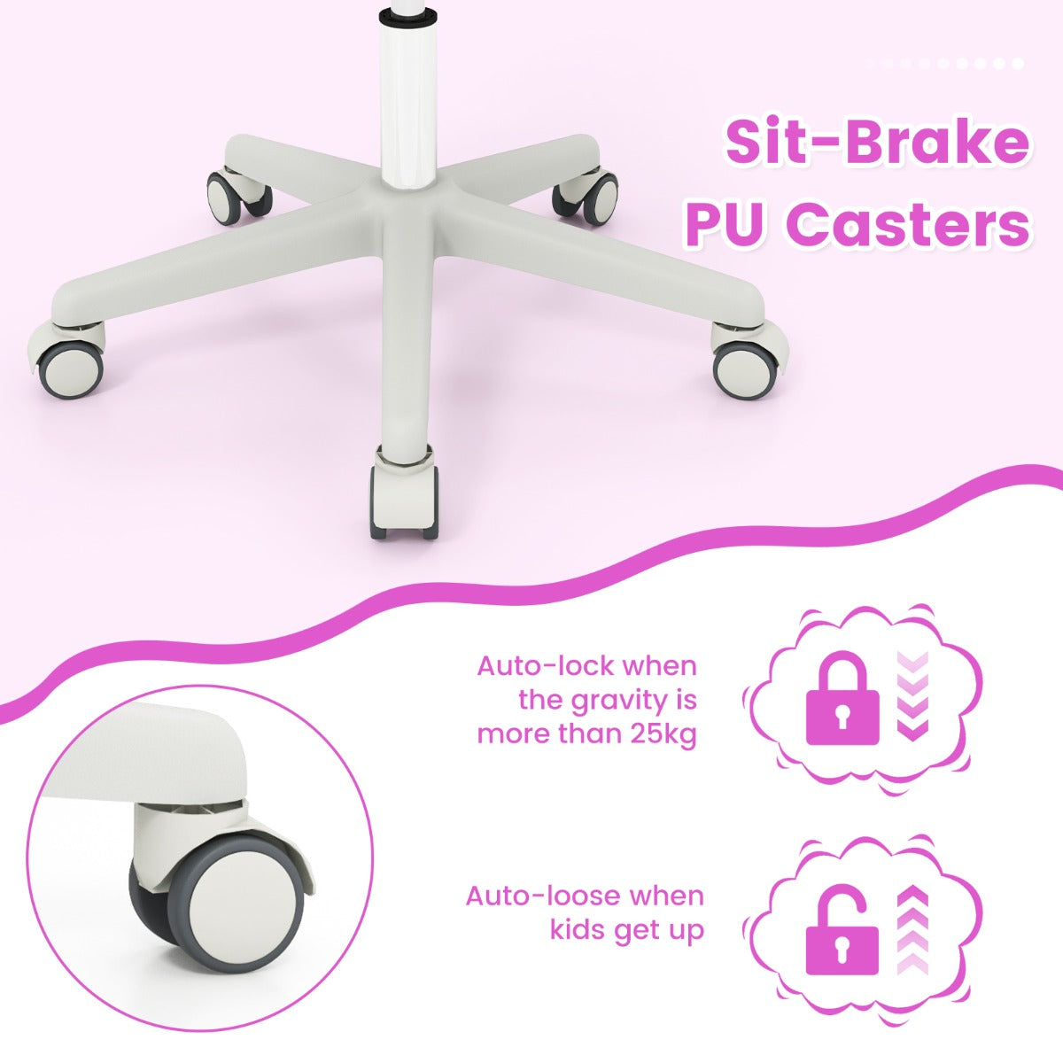 Our height-adjustable desk chair will grow with your little one(6-15 years old). The premium gas lift system and an adjustment lever allow the chair to easily lift up and down. Ergonomic backrest helps kids to develop a good sitting posture. Smooth armrests and elastic mesh seats add more sitting comfort. The breathable nylon mesh fabric ensures heat dissipation and excellent durability. Besides, the 360° swivel seat ensures easy changing direction. 5 flexible wheels allow for easy movement. The sit-brake wheels will automatically lock when the pressure is over 25kg and automatically lose when kids stand up. Bullet Point: Height Adjustable Function: The kid's task chair will smoothly lift up and down from 80-92cm with the premium gas lift and adjusting lever. Thus, kids can sit in the most comfortable position. Adjustable height satisfies the needs of kids from 6 to 15 years old. Ergonomic Backrest and Armrests: An ergonomic curved backrest with back support fits well with the kid's body curve, which is good for spine protection and relief of fatigue. Meanwhile, the smooth armrests offer extra support for your hands to ensure further relaxation. Swivel Seat and Sit-Brake Wheels: The seat can swivel 360°, enabling kids to change directions for easy reach. 5 sit-brake wheels will auto-lock when the gravity is more than 25kg and auto-loose when kids get up. Kids can not move the chair when the wheels are locked to ensure safety. And the PU wheels won't damage the floor. Upholstered Nylon Mesh Chair: Upgraded nylon mesh fabric offers strong tension and long service life. The elastic and skin-friendly mesh seat guarantees kids' sitting comfort. Additionally, the premium PP support base of the seat ensures sturdiness and durability, allowing the chair to accompany your kids to grow for years. Simple Assembly and Versatile Use: A detailed user manual and all needed accessories make it easy to assemble the desk chair. The chair dimension is 53 x 47.5 x 80-92cm (L x W x H). Once assembled, it can be widely used in the dorm, kid's bedroom or study room. Features: 80-92cm height adjustable design is suitable for kids of different ages(6-8 years old, 9-12 years old, 13-15 years old) Curved backrest, side armrests and comfortable seat to support your back, waist, arms and hip 360-degree swivel seat for kids to change direction without moving the chair 5 sit-brake wheels can be locked under 25kg of pressure Breathable mesh fabric ensures air ventilation and heat dissipation High-quality PP frame for long-lasting service life More details of the chair: rounded corners and cute colours Great for the dorm, kid's bedroom or study room Easy to assemble with a clear user manual Specifications: Colour: Blue/Pink/Purple Material: Nylon Mesh, PP Product Dimensions: 53 x 47.5 x 80-92cm (L x W x H) Net Weight: 6.5kg Installation guide Package Includes: 1 x Kids’ Chair Box Qty: 1(May vary by batch)