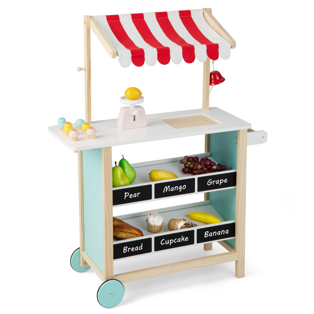 Perfect Gift for Boys and Girls: With a classical look and a canopy with stylish stripes, this wooden farmers market stand will appeal to kids. This is an ideal gift for toddlers who are over 3 years old, whether for a birthday, Christmas or any other festival.