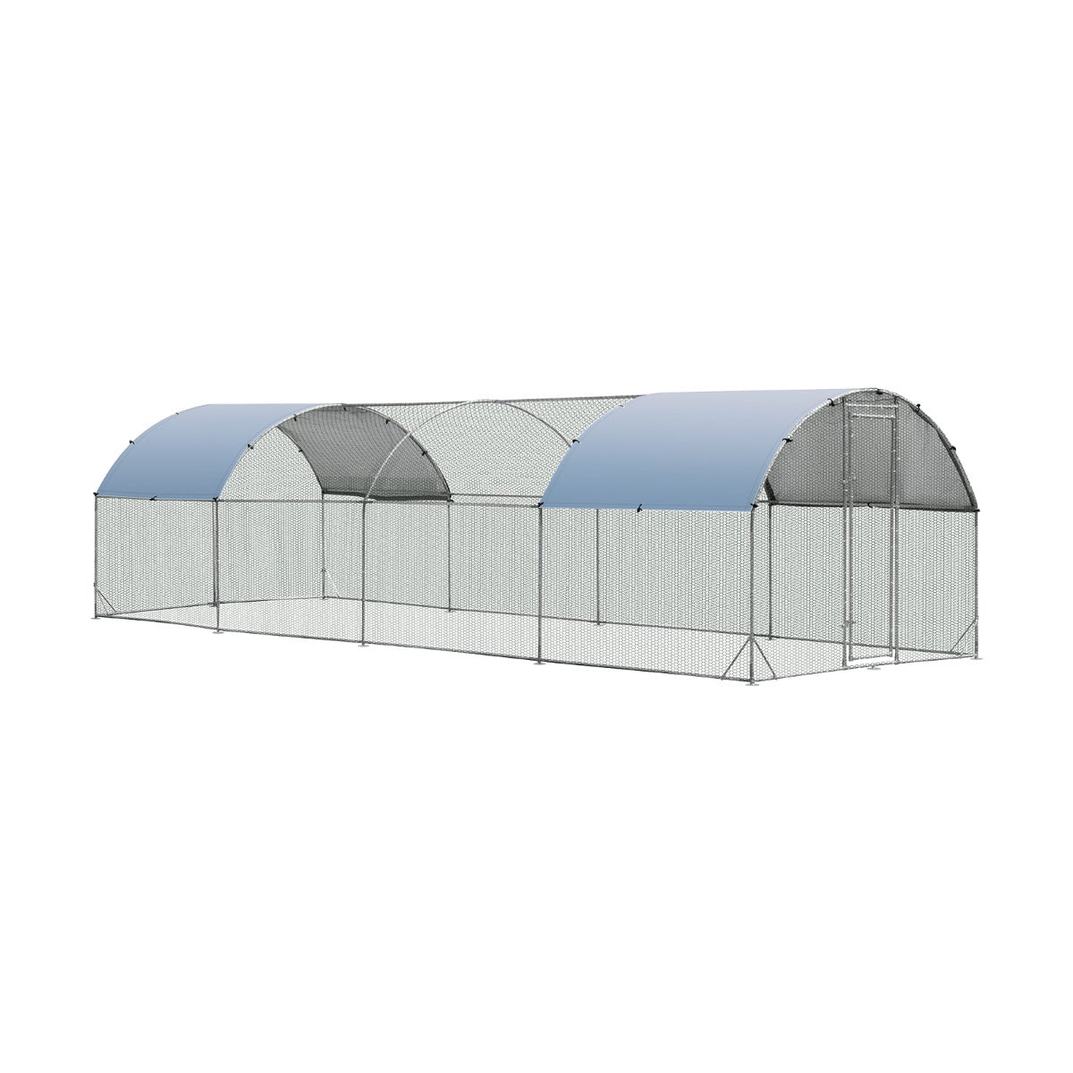 This ultra large and high chicken coop is very suitable for backyard and farm. Plenty of chickens can play in the coop on the day, take a rest at night, have meals and more, which is not only safe for chickens, but also convenient for you. What’s more, the lockable door allows you to enter the hoop to feed and do cleaning and prevents chickens from escaping as well. The poultry cage is composed of anti-rust galvanized steel frame and high-strength hexagon wires that are sturdy and durable for long-term use. At the bottom of the pen run exist stable triangular reinforcement and ground stakes which ensure high-level stability even in serious weather. Furthermore, the waterproof and sun-resistant 210D oxford cover protects poultry from sunburn, rain, snow and debris.
