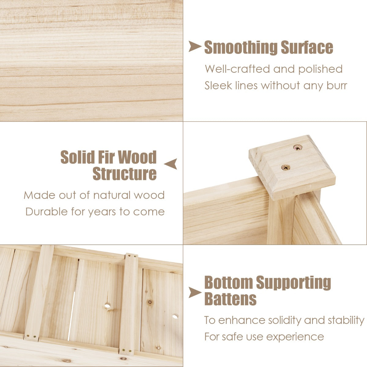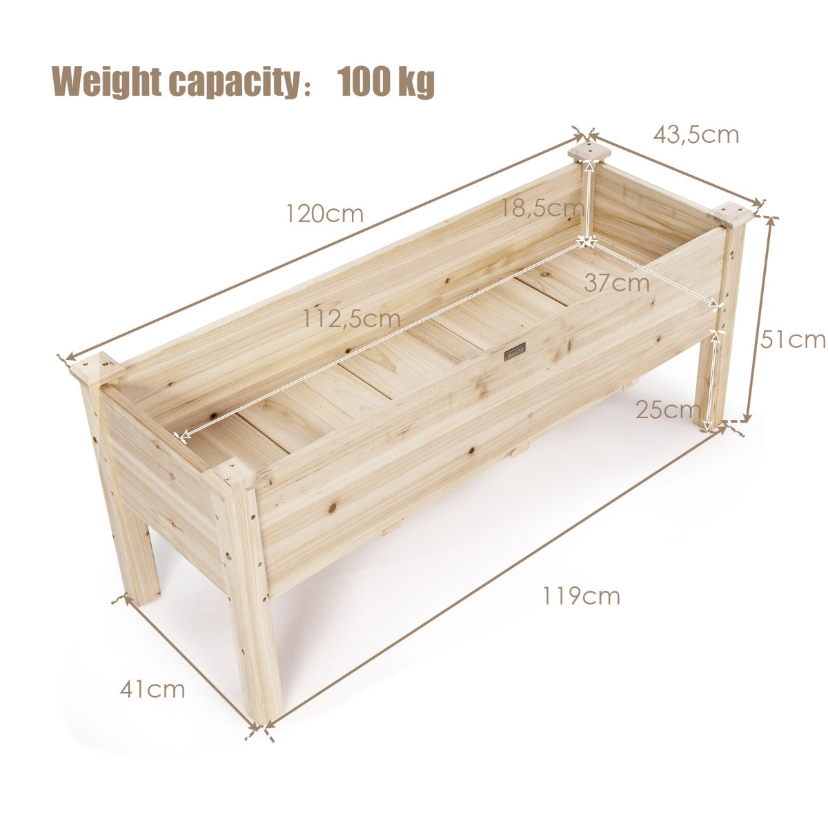 Have you dreamed of creating a dream garden in your backyard? Our raised garden bed may give you a hand. Designed with ergonomic height of 50 cm, this elevated garden bed planter can save your energy and bring a more comfortable feeling while using. 100% non paint and non-toxic solid fir made, the planter bed is sturdy and durable for long time using. Our planter box is also made smoother without wood splinters, protecting you from being injured. With large planting space inside, you can cultivate various plants indoors or outdoors. And the bottom 5 holes will provide airflow and oxygen to help your plants grow healthily. Besides, the decorative end caps on the corner posts and the wood grain on the boards give a rustic and natural style to your garden. So it can be used as a decorative art or as a practical planter kit. Bullet Point: Elevated Garden Bed: Designed with proper height of 50 cm, the planter stand with 4 raised legs enables you to manage plants easily without bending down. Moreover, the height that kids can reach will give you a perfect child-parent gardening experience. Plants will grow healthier and stronger under the protection of the raised height, away from being eaten by pests. Natural Wood Material: Made of non-paint, harmless 100% fir wood, the wood planter enhances great solidity and stability for long-term using, which also provides a natural and healthy environment for plants to breathe freely. Each wood boards are carefully polished that you or plants will not be scratched by accident. Sturdy & Durable Construction: Constructed of the complete side board and heavy-duty hardware, the planter garden box kit is more firm compared with other several pieces side board planter box, which can hold up to 100 kg. The side plates are fixed tightly to better maintain the soil moisture without soil leakage. Ample Planting Space: Coming with a nearly 1.2 m long gardening box, the interior is deep and wide enough for you to cultivate your favorite fruits, vegetables, flowers, herbs. The bottom of the planting bed has 5 drainage holes to provide more oxygen and good ventilation for your plants to grow more healthily. Outdoor & Indoor Usage: With easy-to-understand instruction, the planter box can be set up in a short time. Featuring natural style and practical function, this planter bed can be placed at patios, porches, decks, balconies or garden. Not only can the planter kit serve as a decorative work but also it fully plays its practical role. Features: Elevated garden bed makes plants grow healthier and stronger away from pests Ergonomic height of 50 cm enables you to manage plants without back pain Natural 100% non-paint fir wood material ensures sturdiness and durability Complete side board and high quality hardware are firmly fixed to bear 100 kg Interior bed with large space to cultivate flowers, fruits, herbs or vegetables Bottom 5 drainage holes provides oxygen and ventilation for plants’ growth Decorative 4 end caps on the corner posts protect you from being scratched Rustic and natural style makes it to be put anywhere like garden, porch, etc. Easy to assemble with detailed instruction and embedded combination mode Specifications: Color: Wood Material: Fir Wood Product dimensions: 120 x 43.5 x 51 cm (L x W x H) Net weight: 9 kg Interior size: 112.5 x 37 x 18.5 cm (L x W x H) Maximum weight: 100 kg Package includes: 1 x Raised Garden Bed 1 x User manual Box Qty:1(May vary by batch)