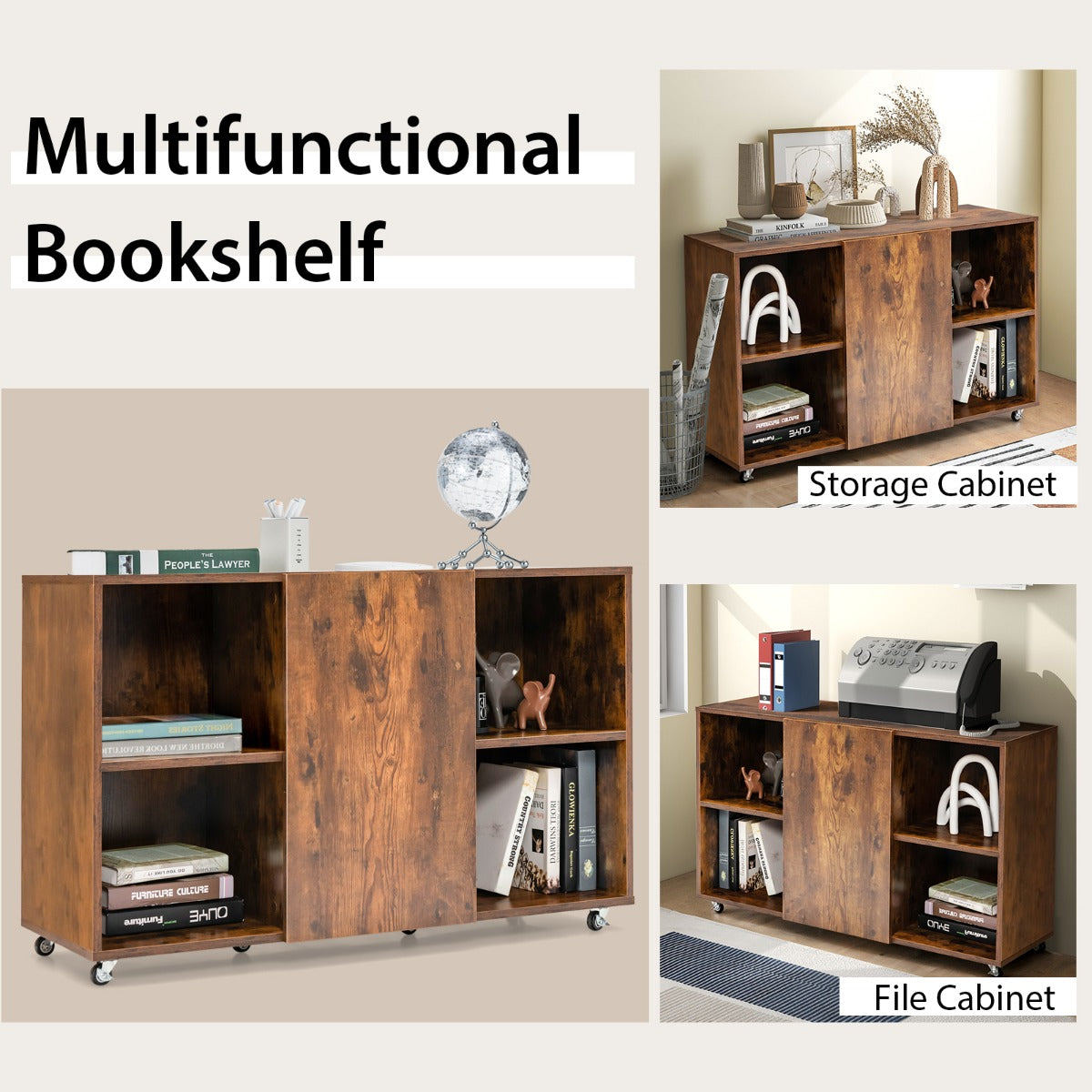 NNECW Mobile Wood File Cabinet with Wheels for Home/Office-Coffee