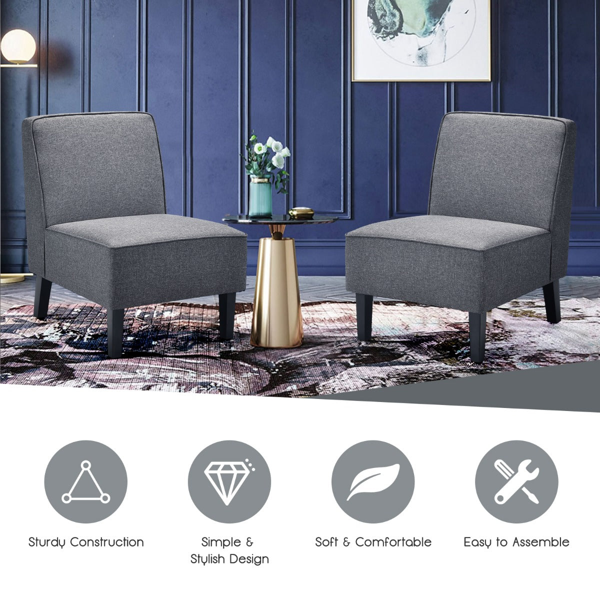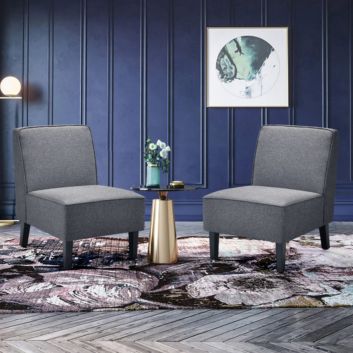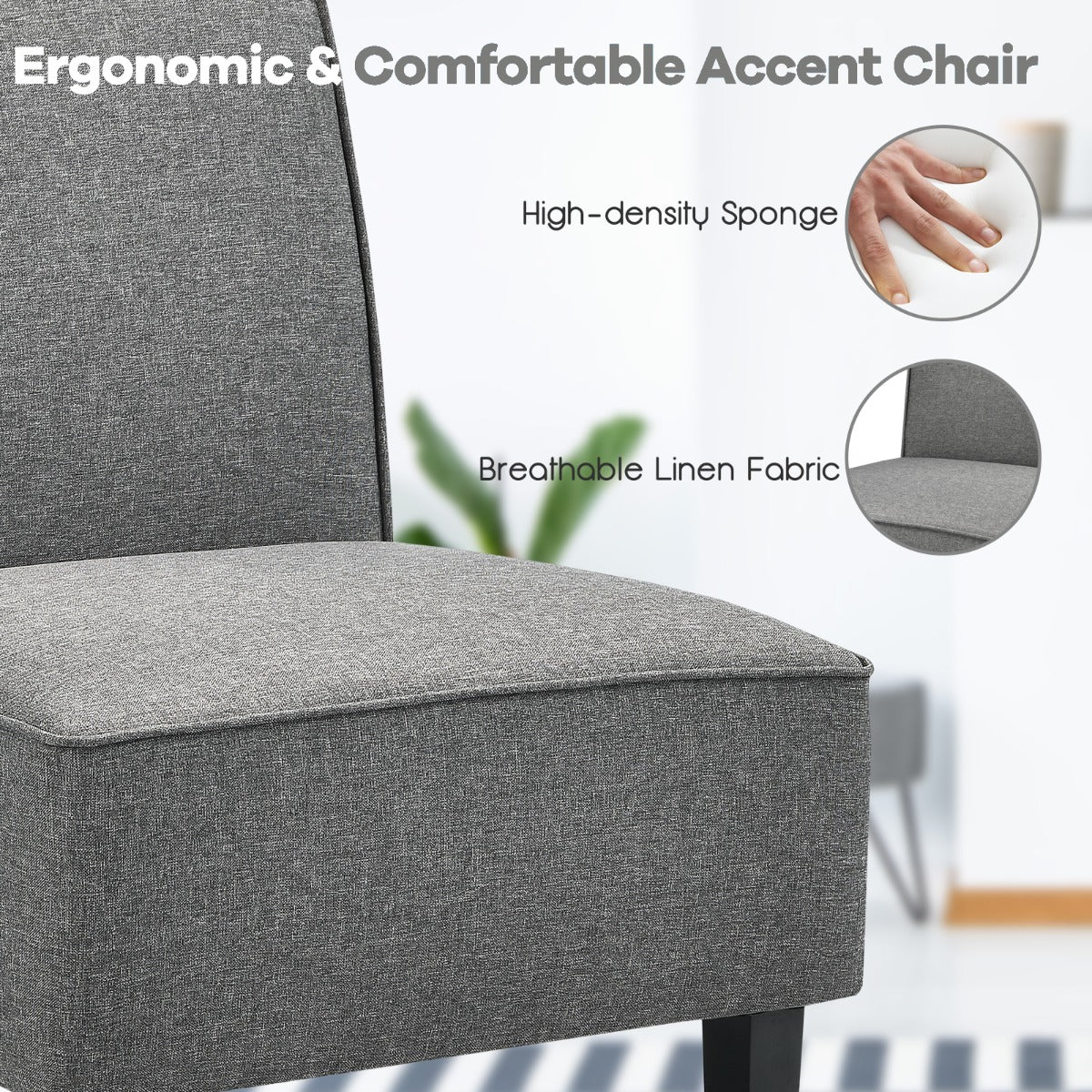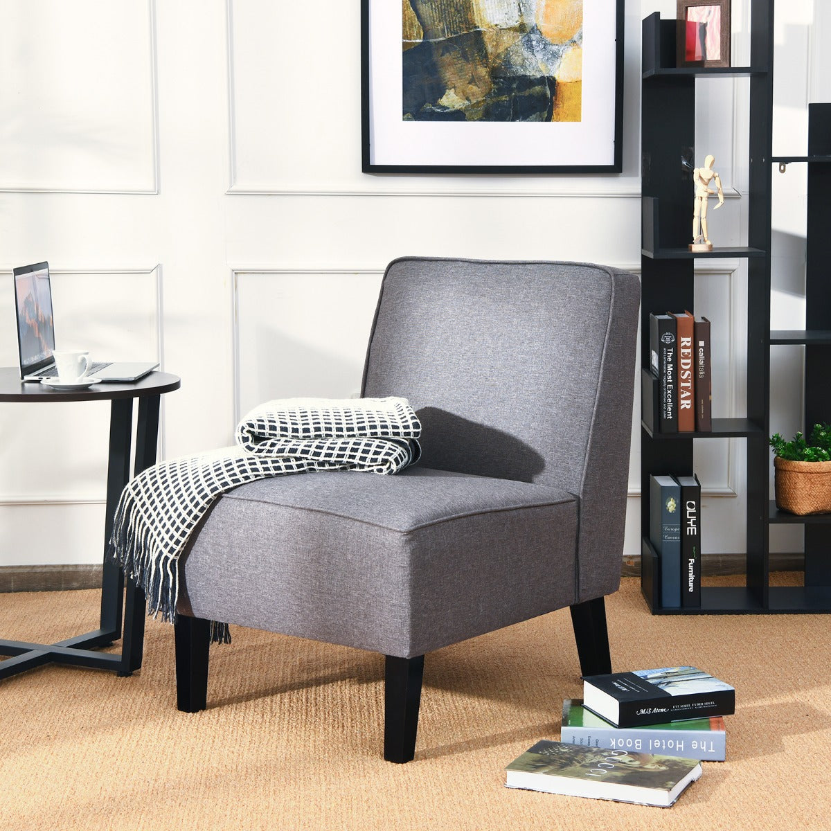 NNECW Modern Armless Accent Chair Fabric Single Sofa with Rubber Wood Legs-Grey
