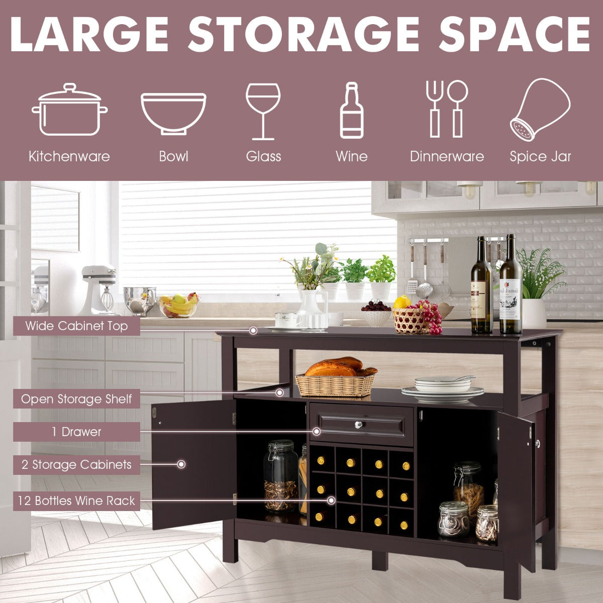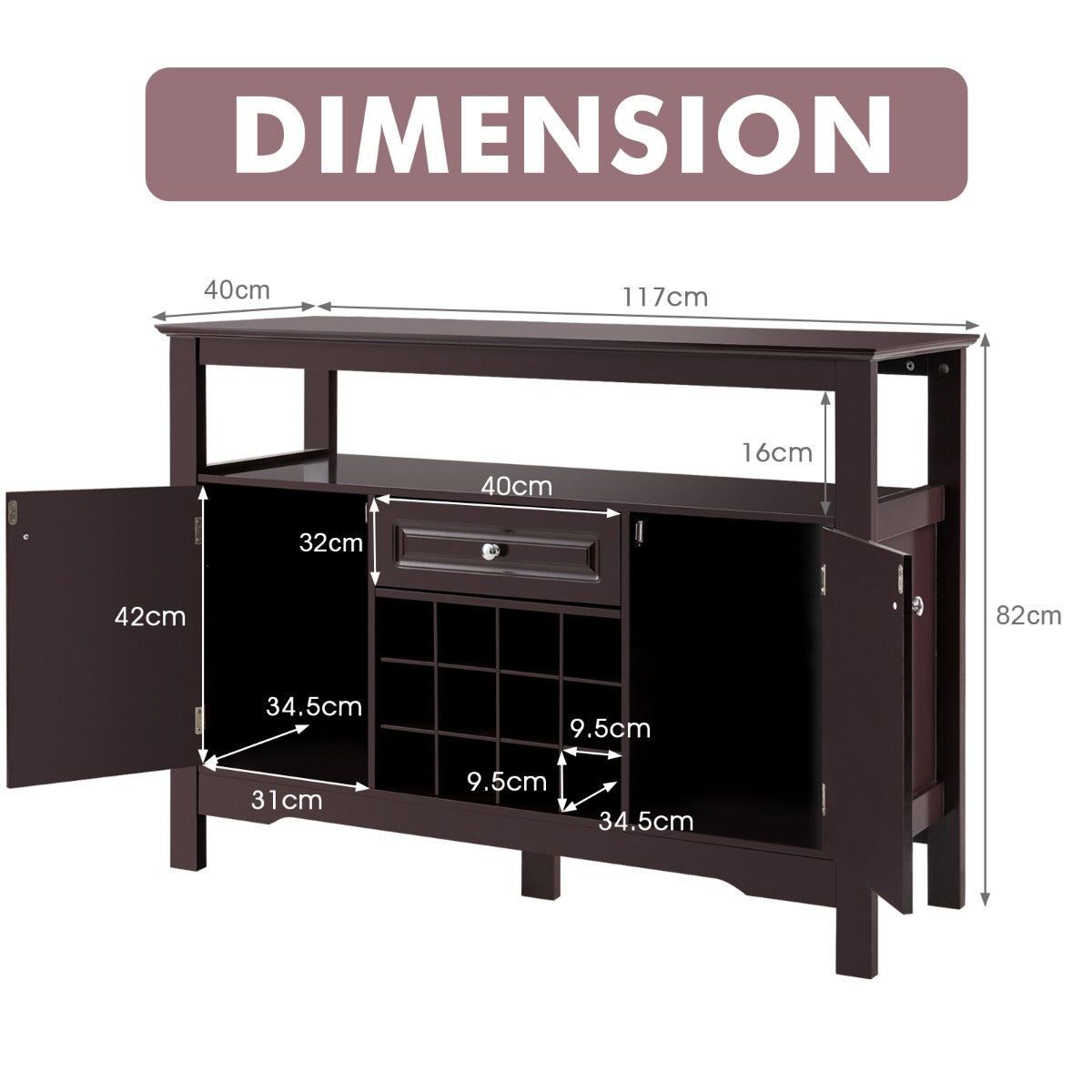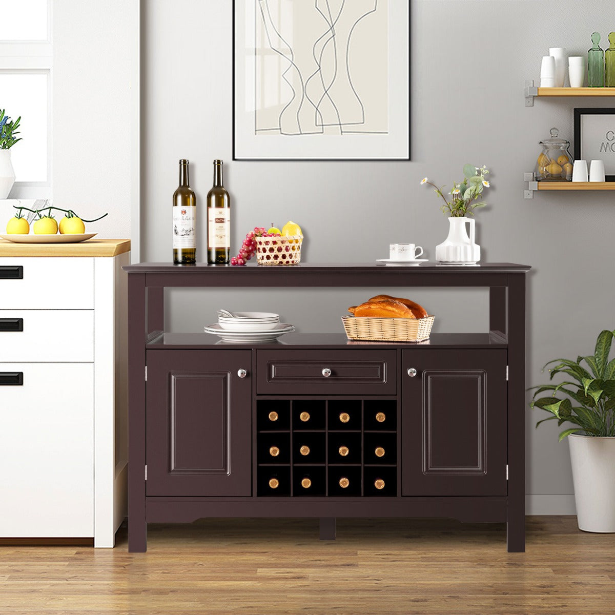 NNECW Modern Dining Buffet Cabinet with Wine Rack & 2 Cabinets & Drawer-Coffee
