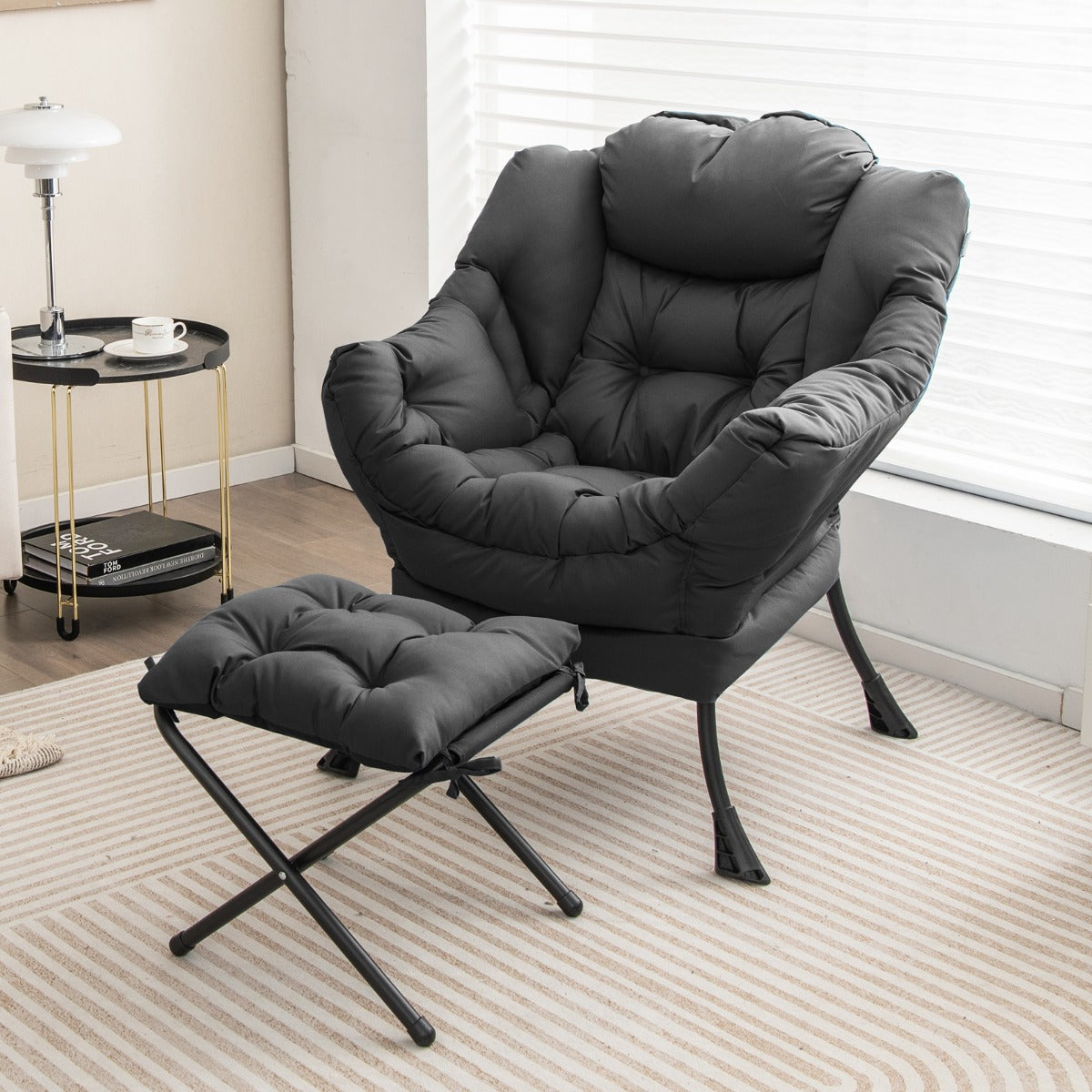 NNECW Modern Lazy Chair with Ottoman & Pillow & Armrests & Side Pocket-Grey