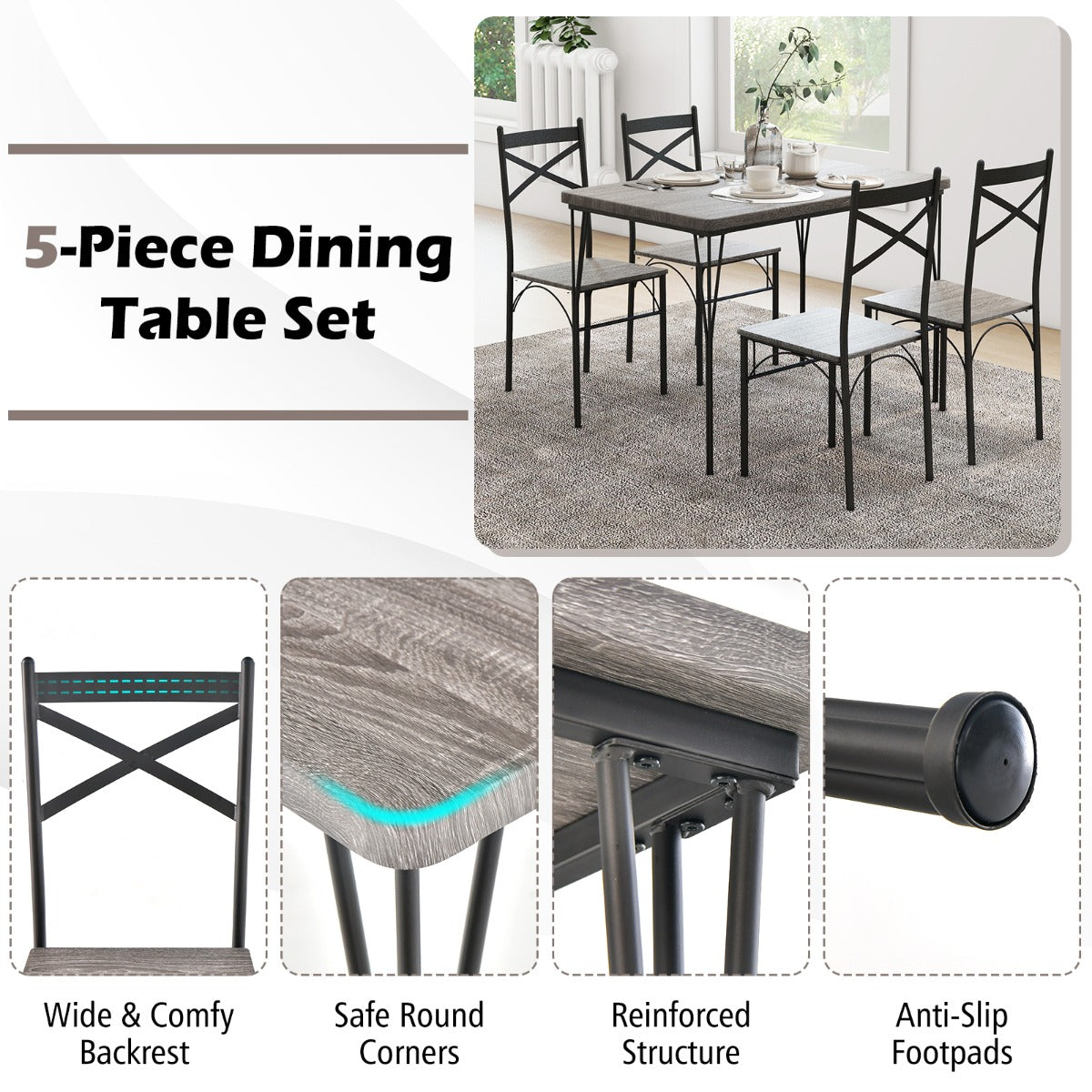 NNECW Modern Rectangular 5-Piece Dining Table Set with Metal Frame