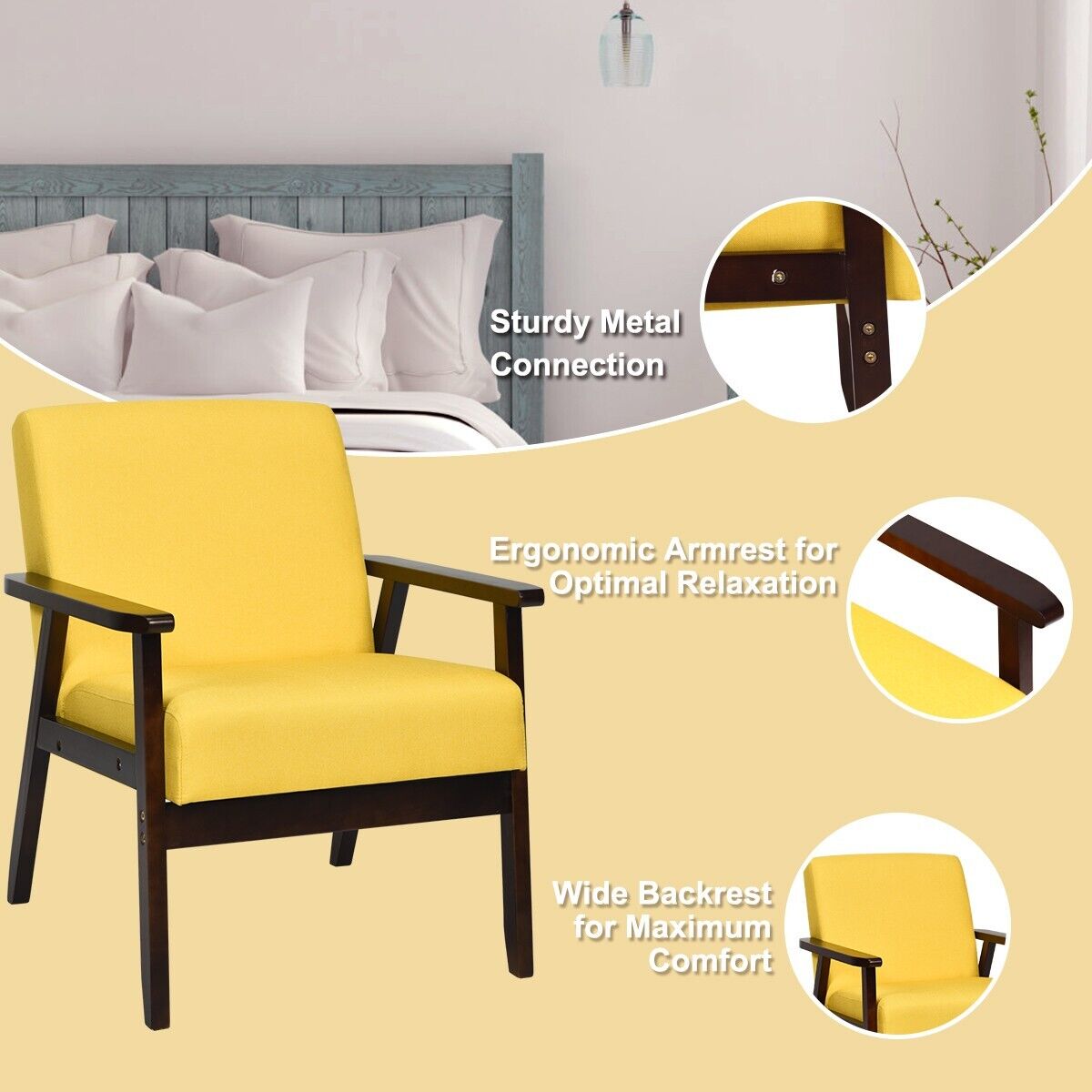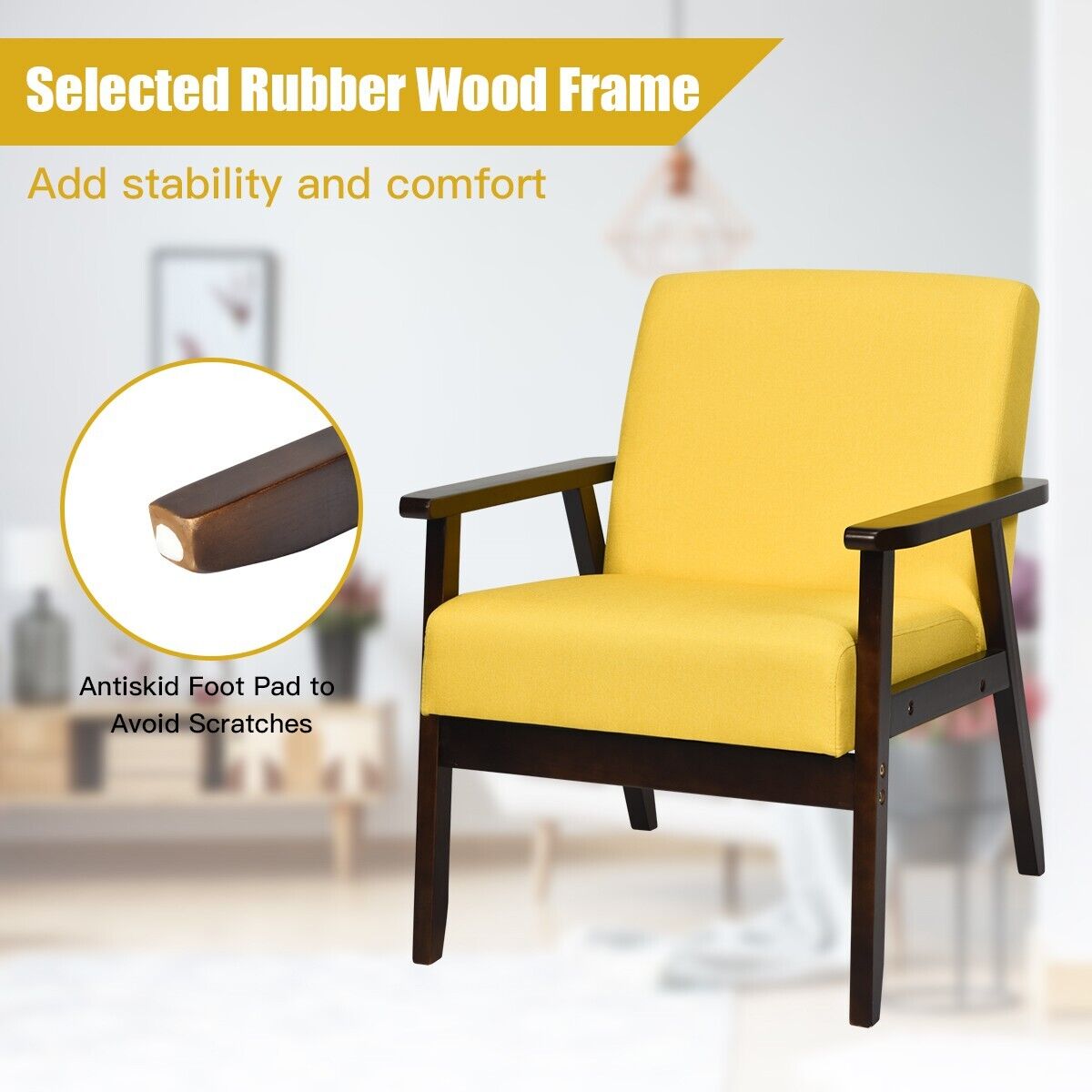 NNECW Modern Upholstered Linen Fabric Accent Sofa Chair with Wooden Armrest-Yellow