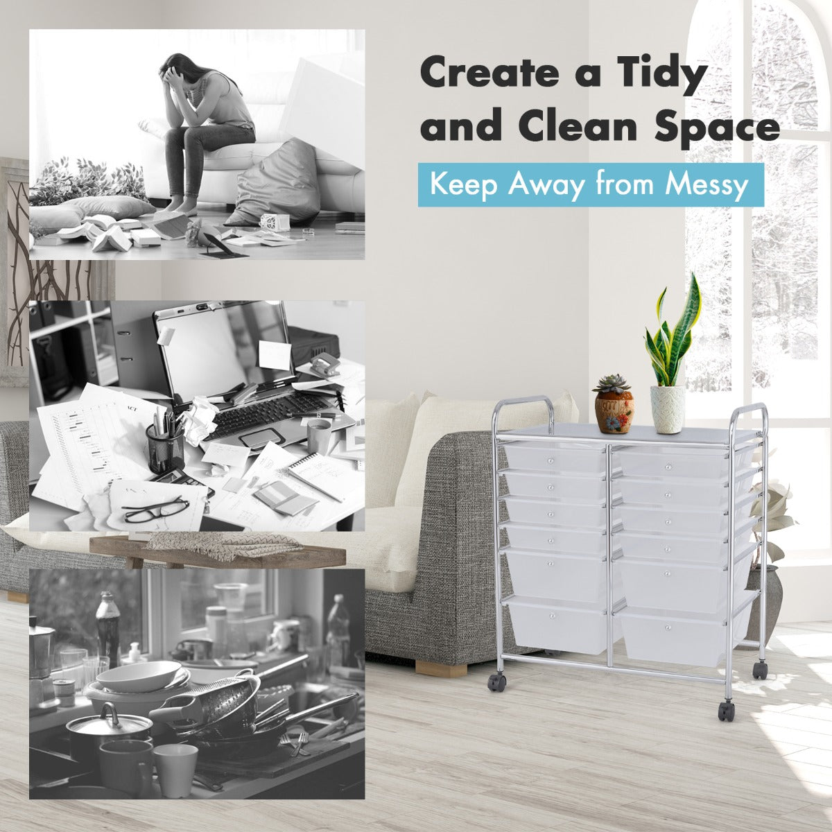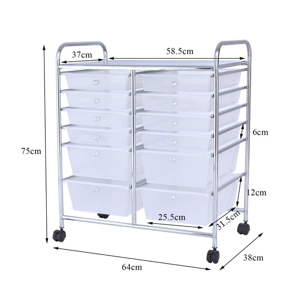 NNECW Movable 12-Drawer Storage Trolley with 2 lockable for Home Office Clear