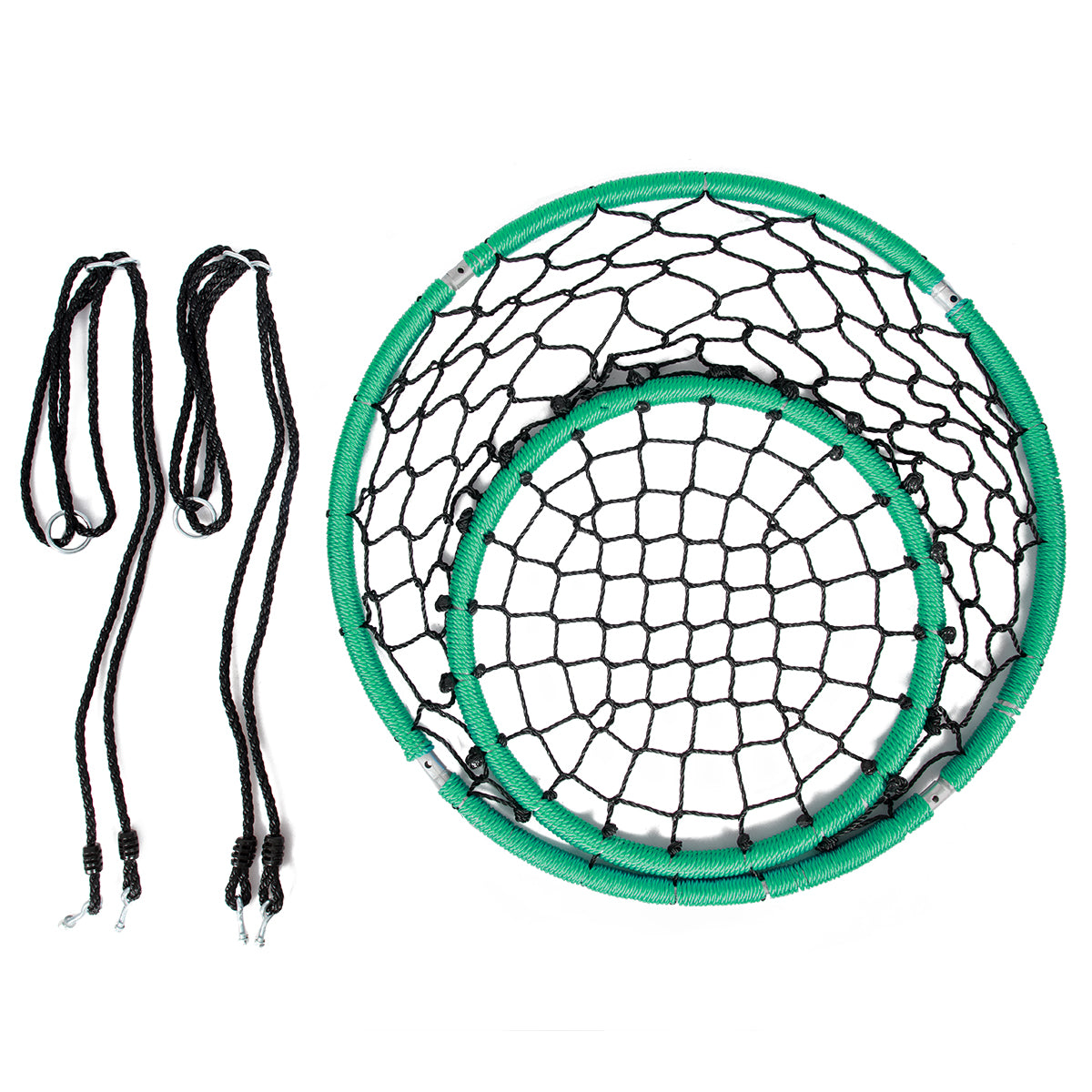 Safe and Durable Materials: Considering the problems of safety, our web chair swing is made of sturdy galvanized pipes and thick ropes for long-term use. It has a strong load-bearing capacity and is spacious enough for kids to sit comfortably inside.