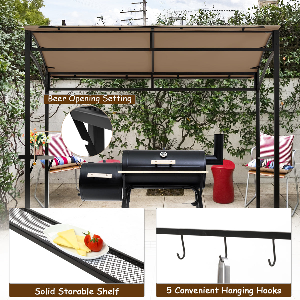 NNECW Patio Barbecue Canopy with Serving Shelf and Storage Hooks for Garden-Coffee