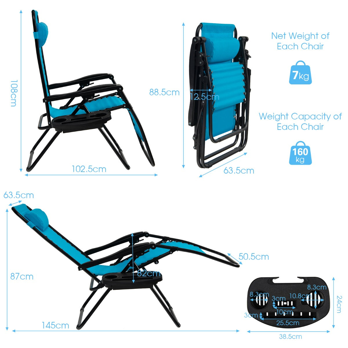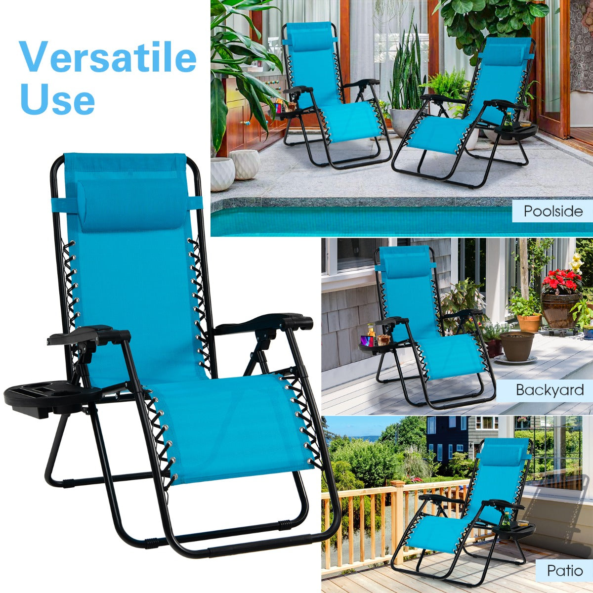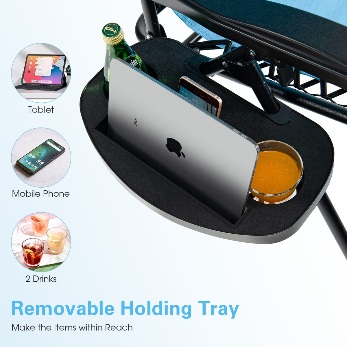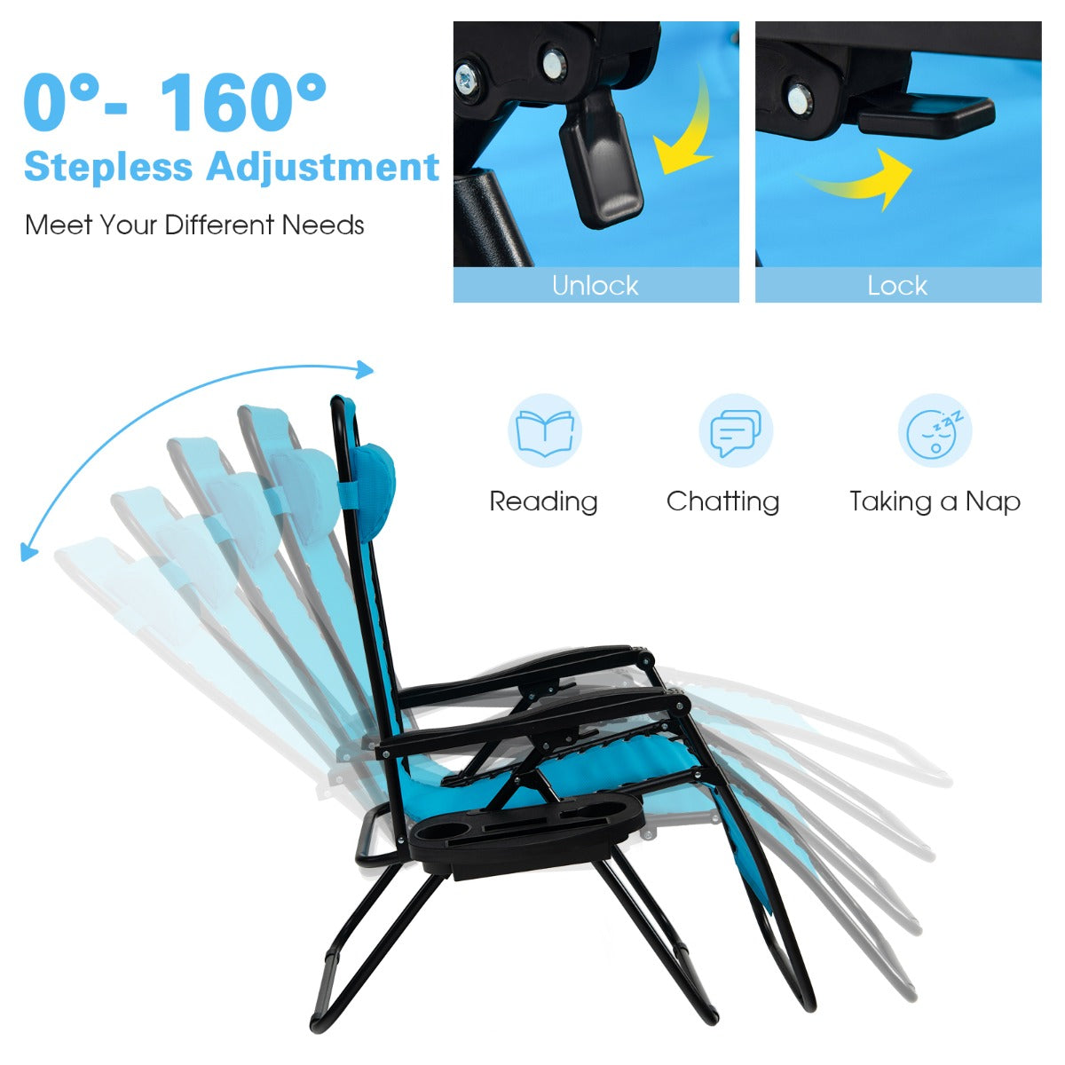 NNECW Patio Zero Gravity Lounge Chair with Cup Holder & Removable Pillow-Blue-1 piece