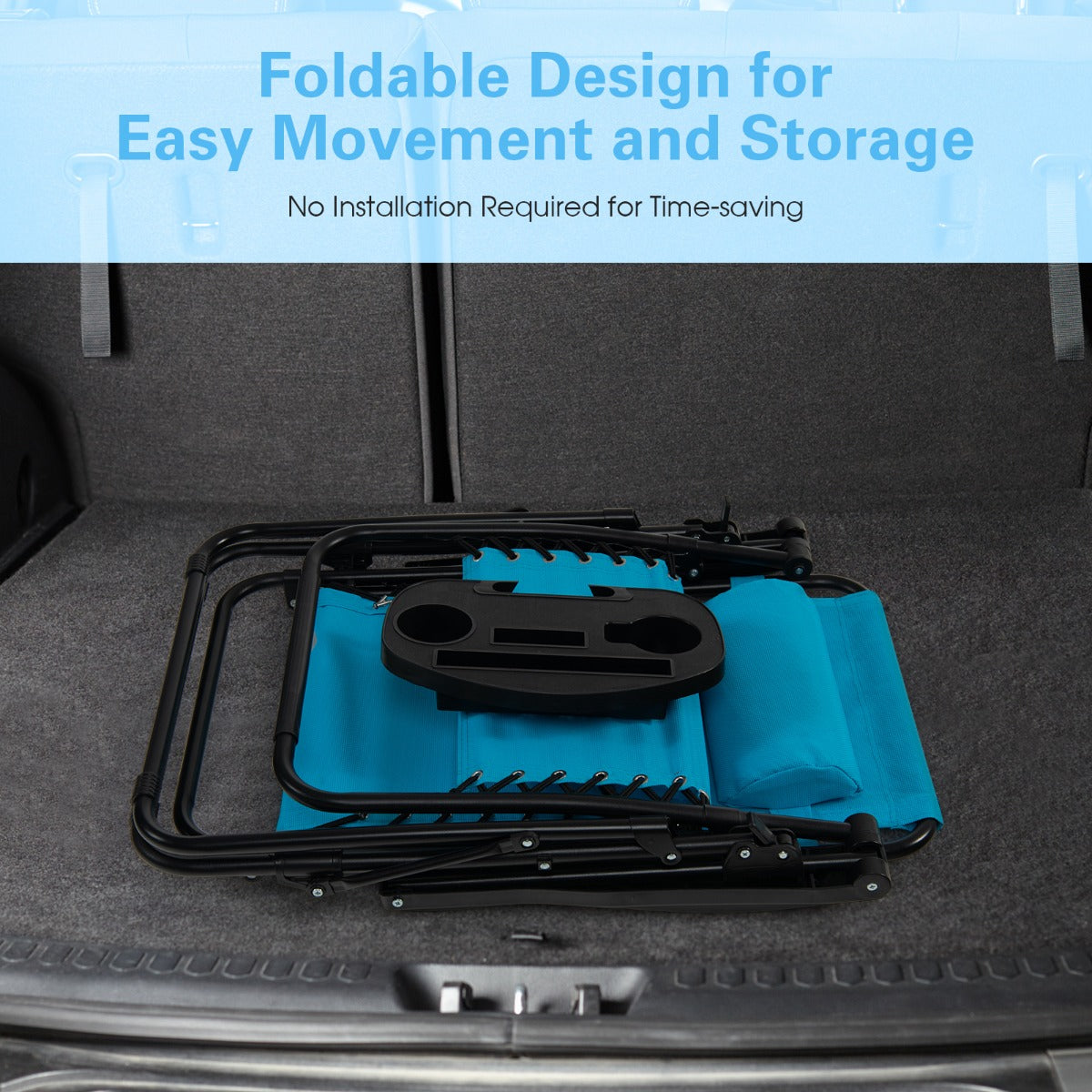 Take a vacation on the beach or rest beside the poolside with our zero-gravity chairs! These high-quality zero gravity chairs are great for beach, courtyard, poolside or indoor places. With a folding design, you only need to leave a space for it in your trunk and our recliners can accompany you anywhere and anytime. The ergonomic headrest and high-elastic bungee ropes provide comfortable support. And the adjustable design with a locking system allows you to choose a suitable angle to satisfy your various needs. What's more, the removable tray can be assembled on both sides of the chair for convenient use. And the powder-coated frame with quick-drying fabric makes maintenance effortless. Enjoy leisure time with family and friends!
