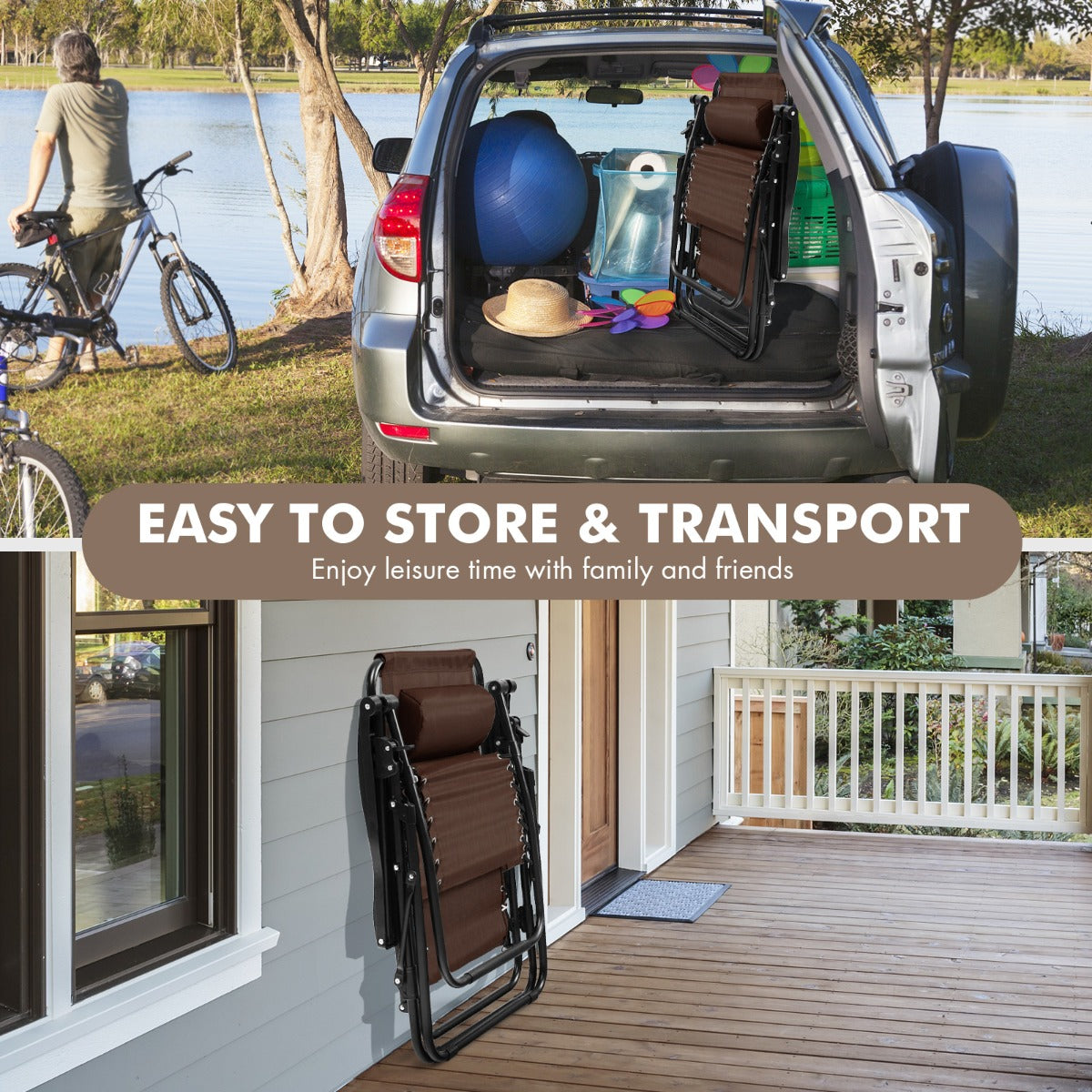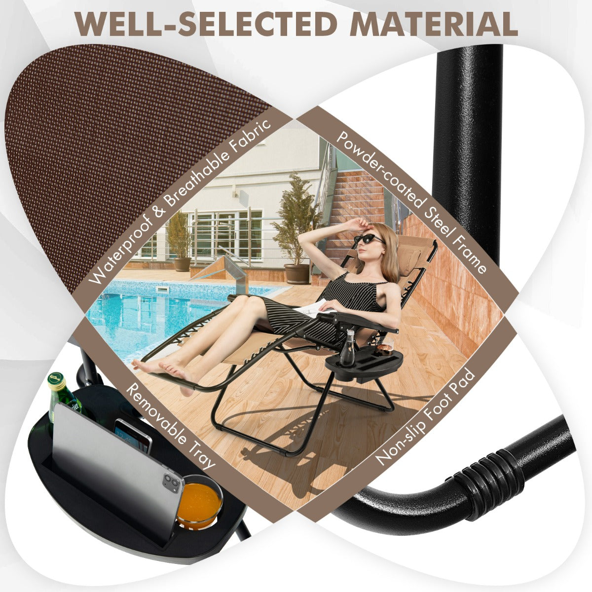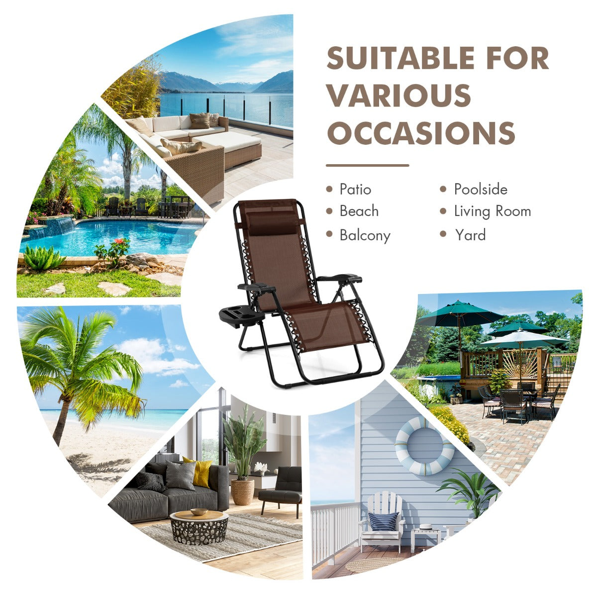 NNECW Patio Zero Gravity Lounge Chair with Cup Holder & Removable Pillow-Coffee-1 piece