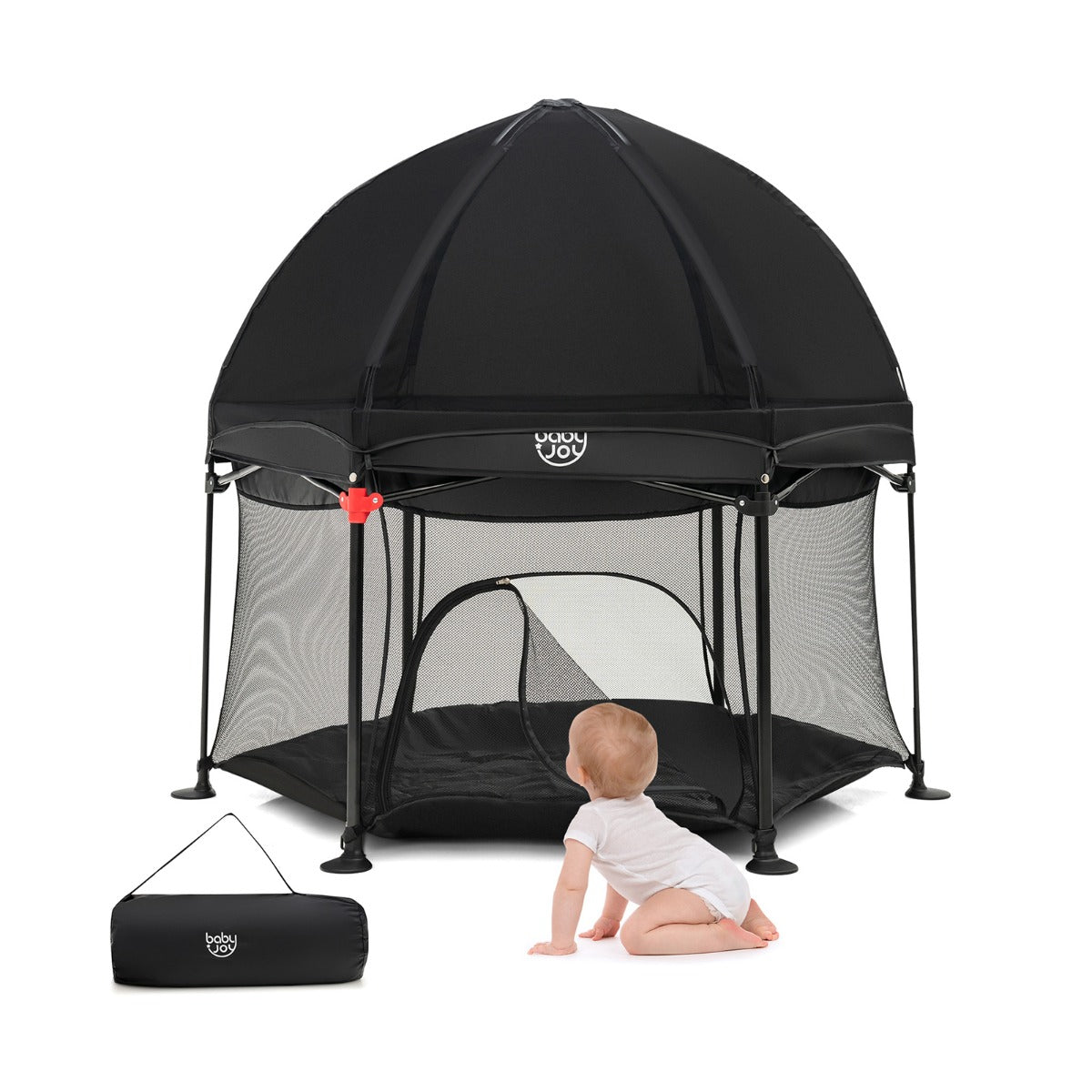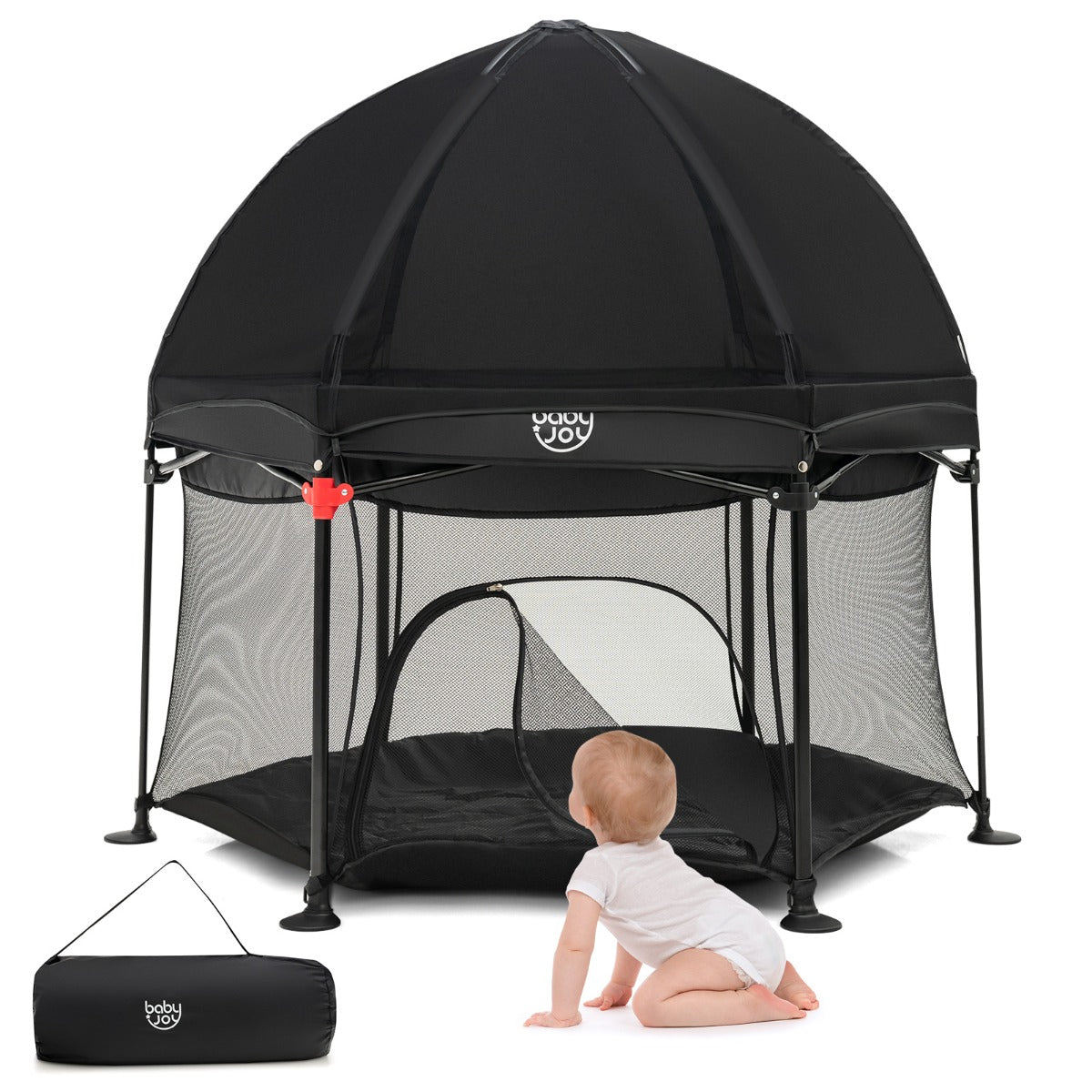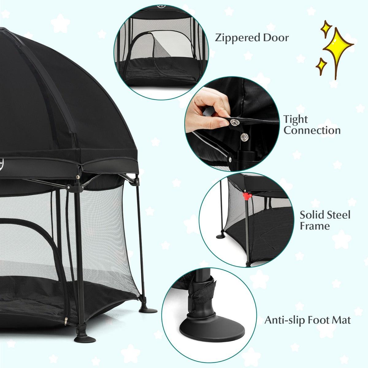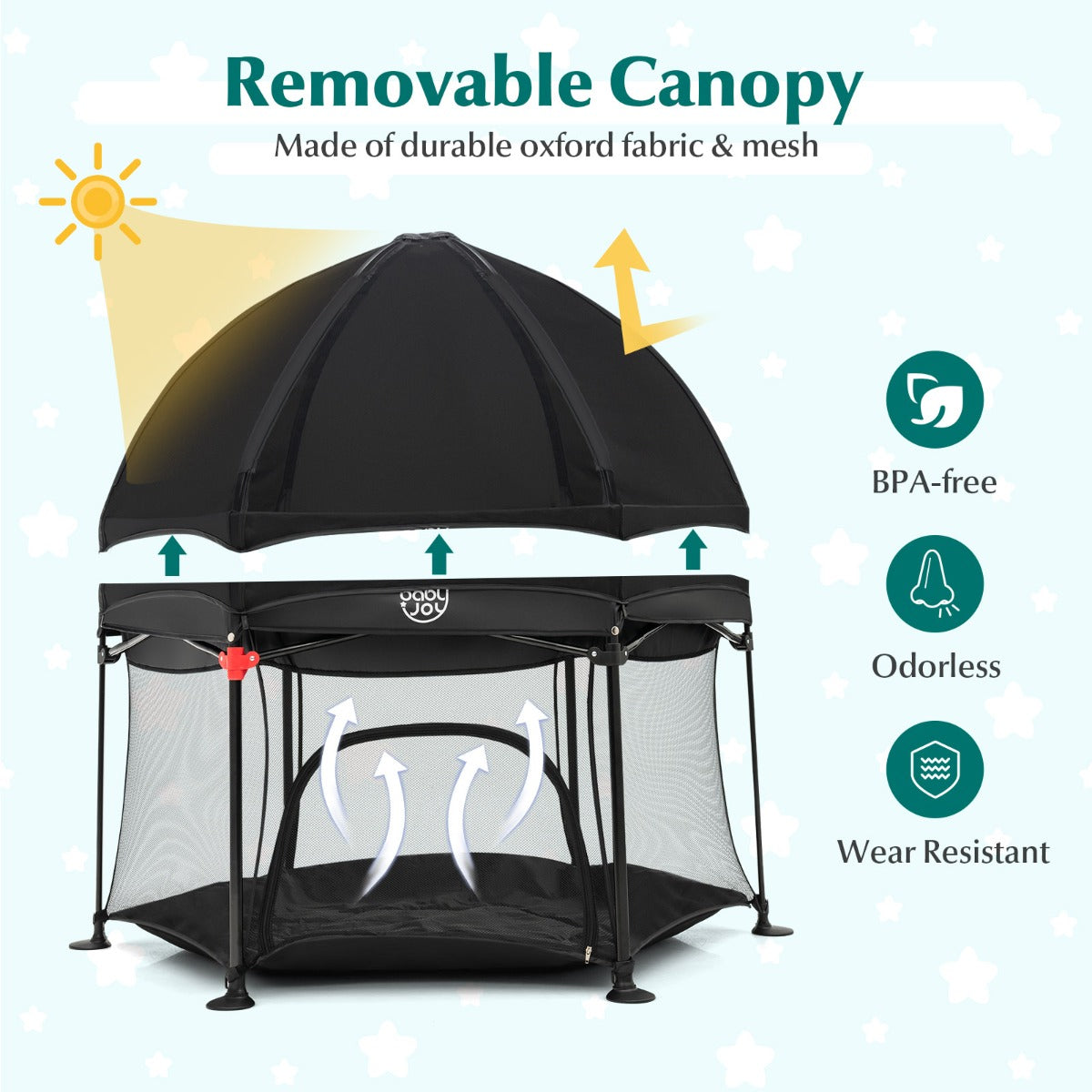 NNECW Portable Baby Playpen with Removable Canopy for Indoor & Outdoor Black