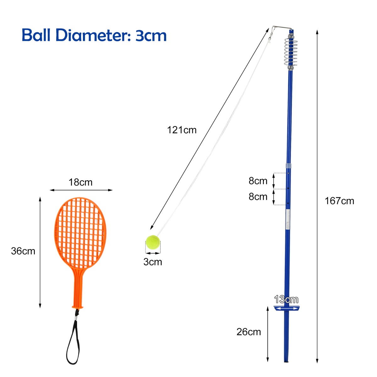 Convenient Tether Tennis: This portable tether tennis game set features a tetherball with a 121cm elastic string that can secure the ball to the cord and provide high resilience to bear intense tennis training. And there exists a swivel arm and spiral coil adding more fun.