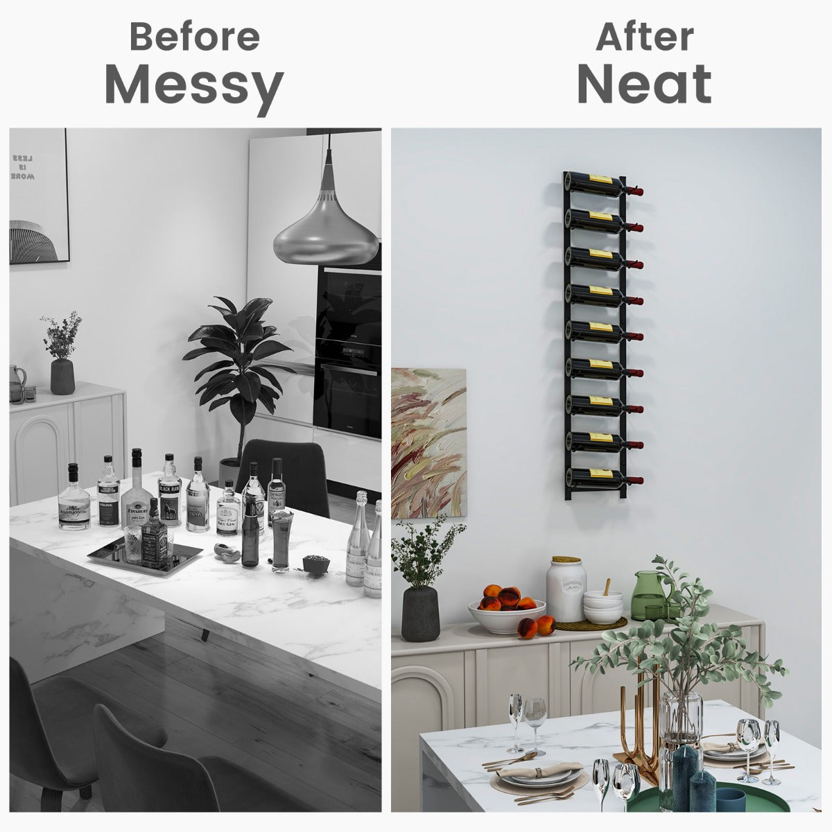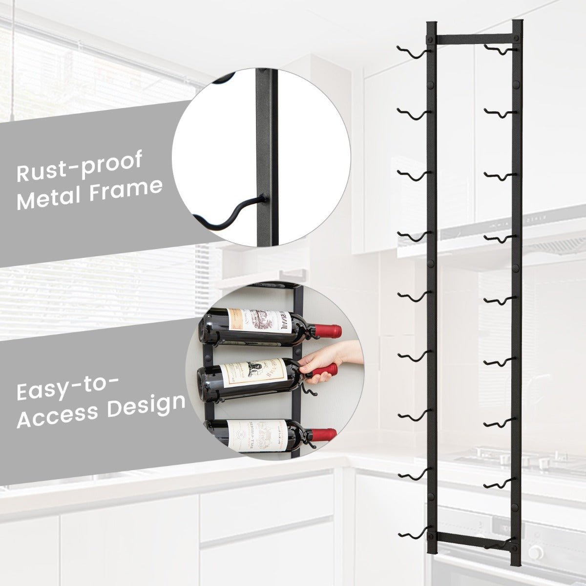 NNECW Rust-proof Metal Wall Mounted Wine Rack for 6/9/12 Bottles-9 Bottles