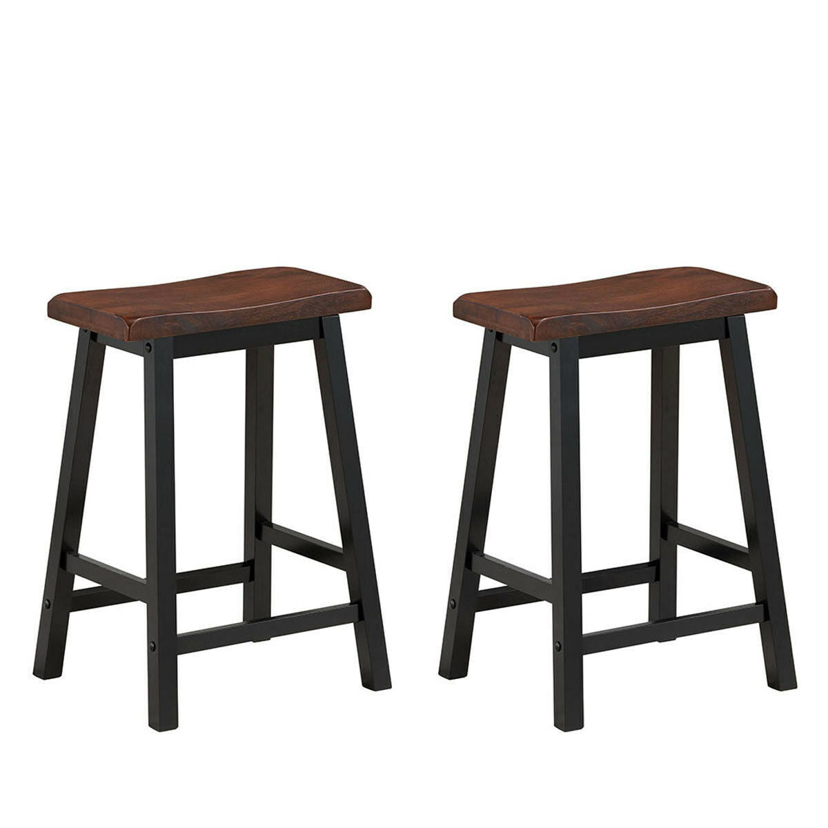 NNECW Saddle Seat Stools Set of 2 Wood Vintage Counter Height Chairs-Brown