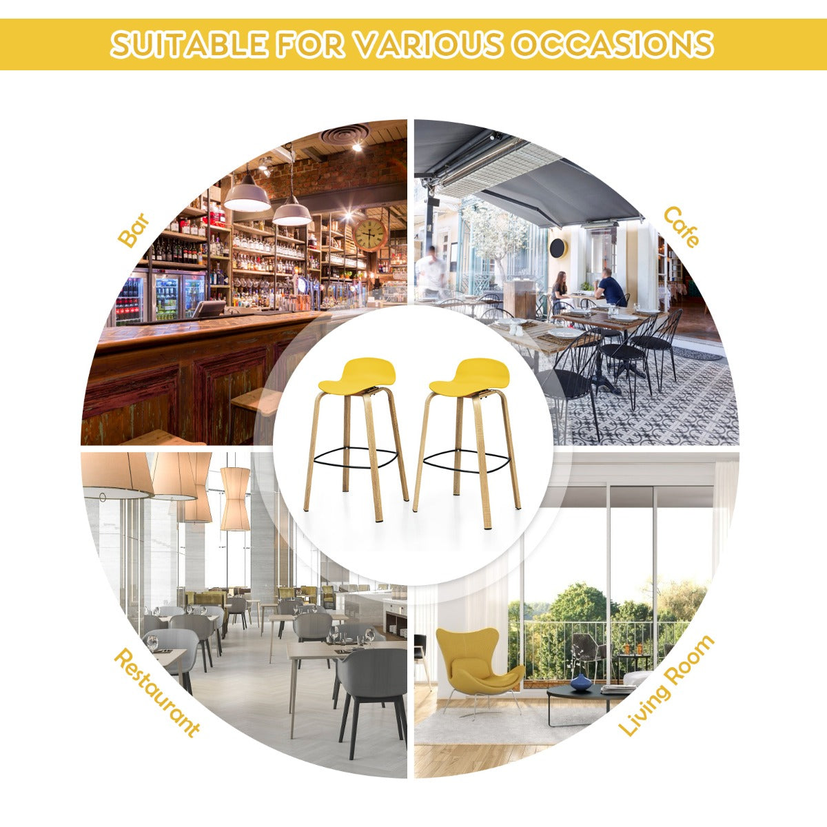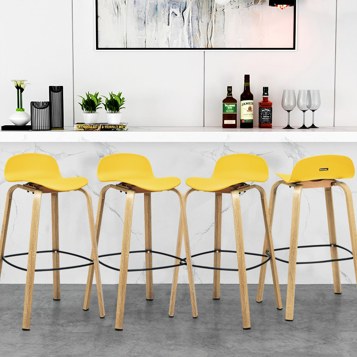Selected Material for Long Service Life: The bar stool seat is made of high-quality PP material, and it is wear-resistant, anti-scratch and hard to damage, which can be used for a long time. Additionally, the premium solid leg makes it more durable and long-lasting.