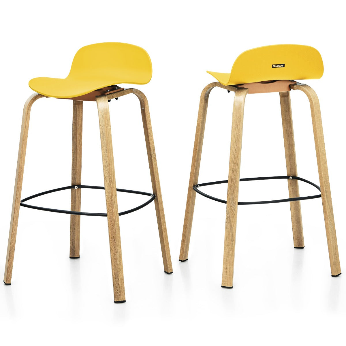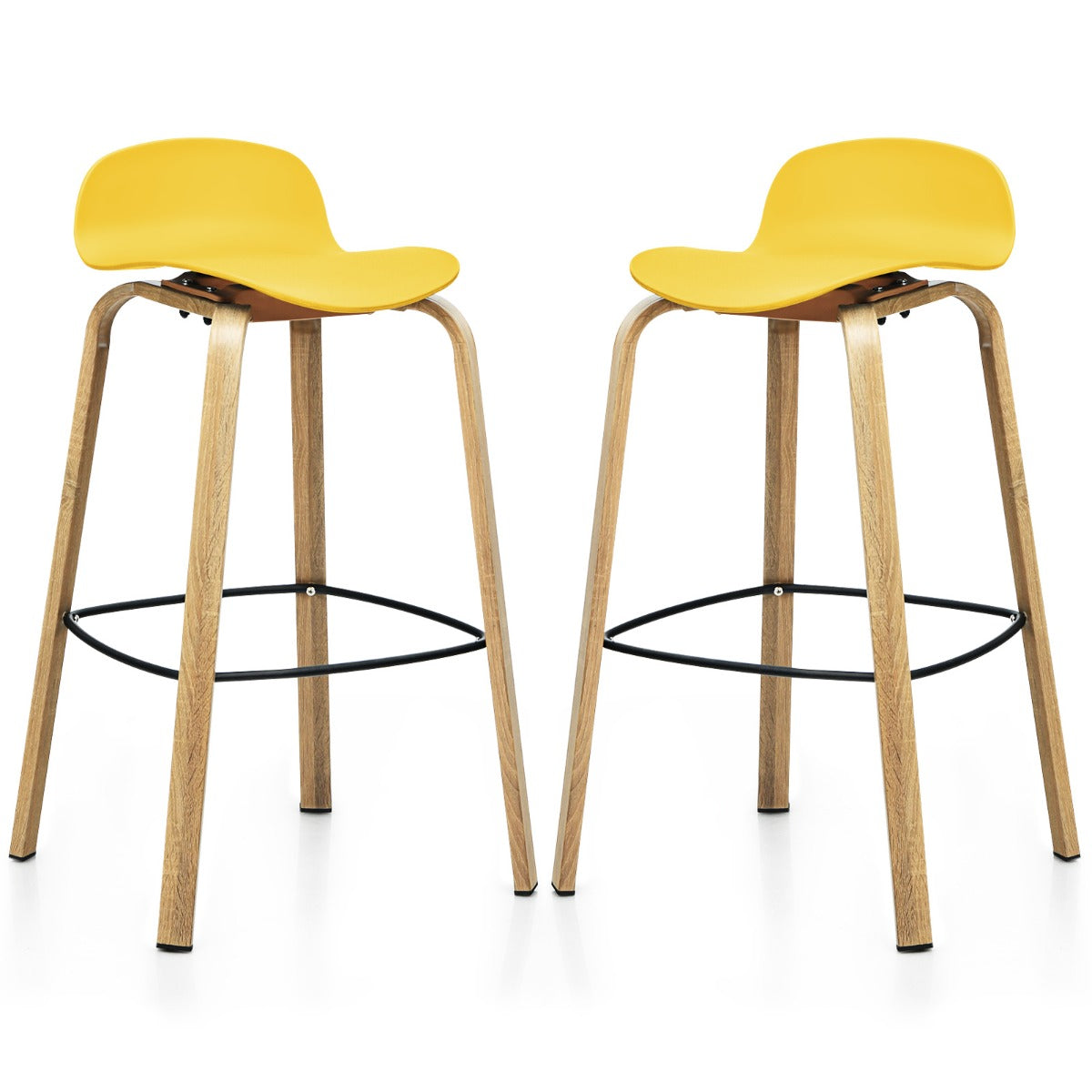 NNECW Set of 2 76cm Height Bar Stools with Footrest & Low Backrest-Yellow