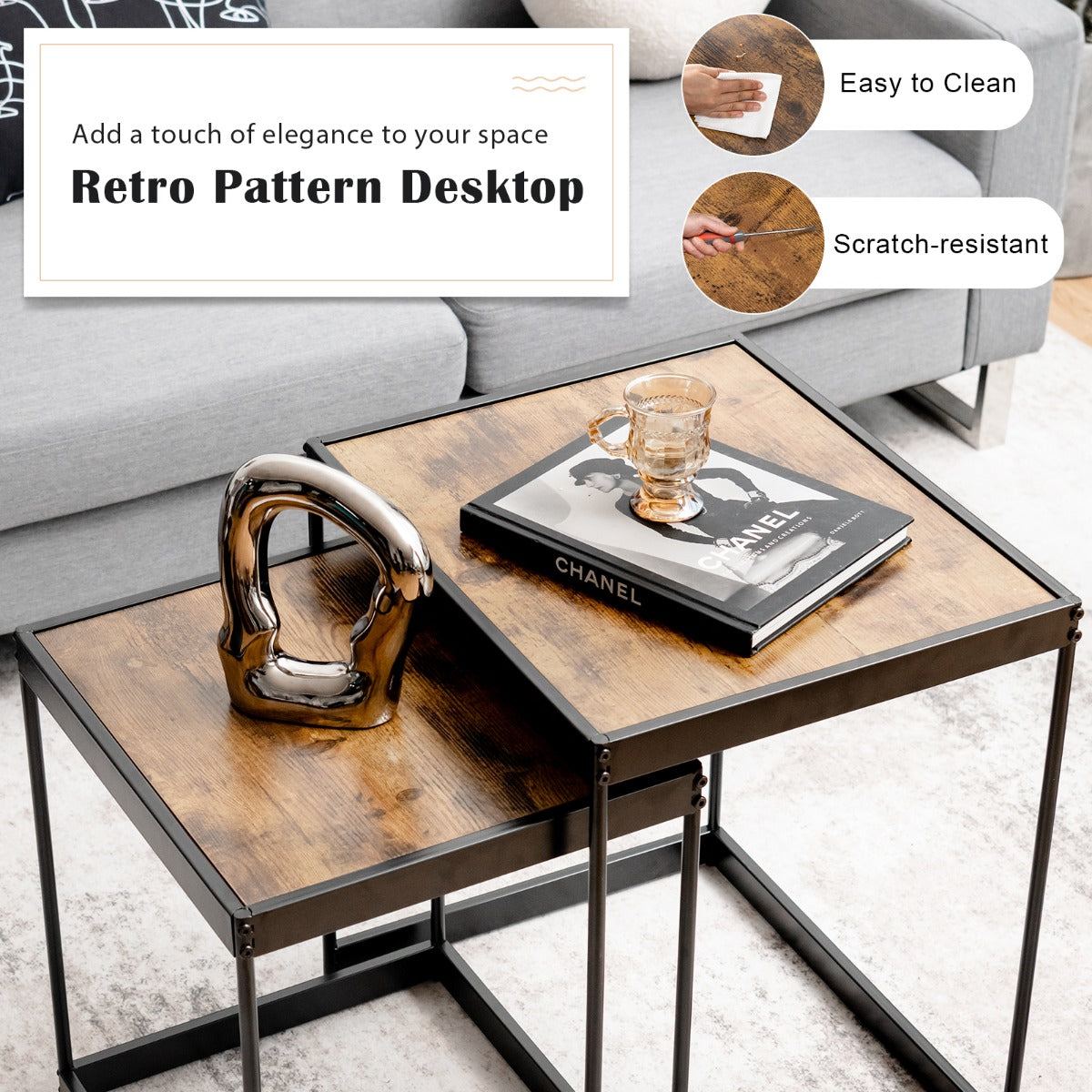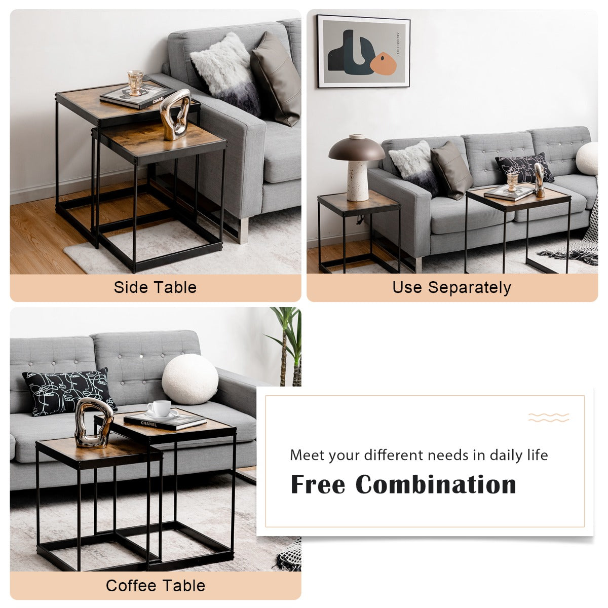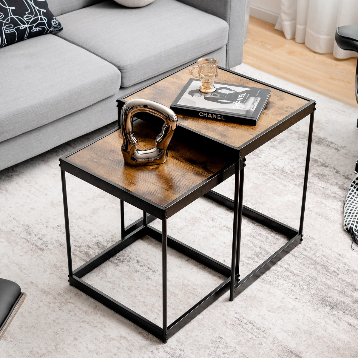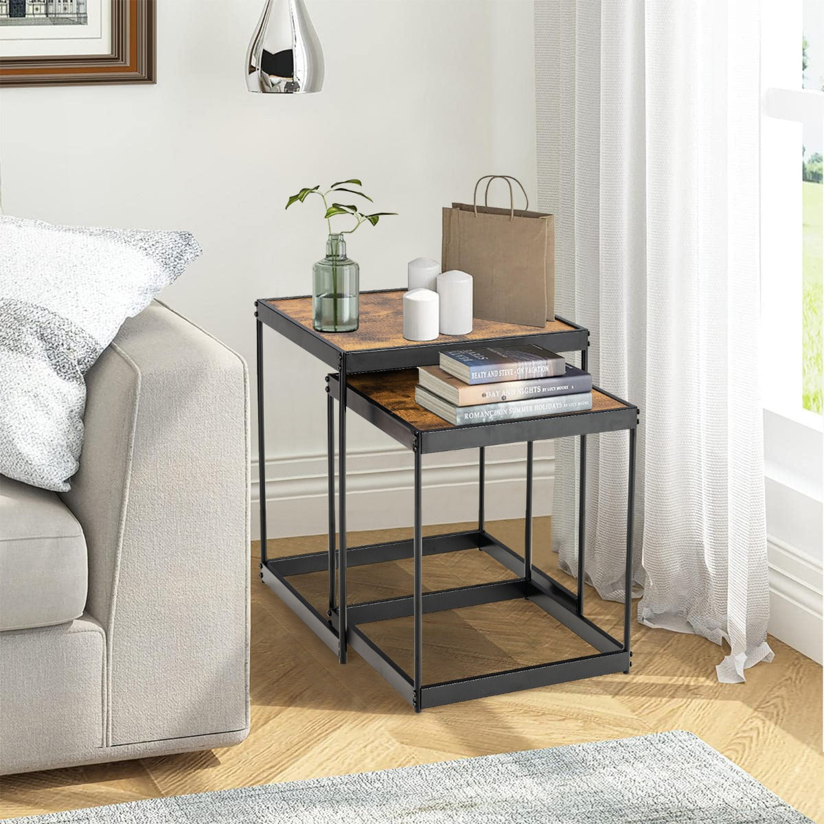 NNECW Set of 2 Square Nesting Tables with Sturdy Steel Frame for Living Room