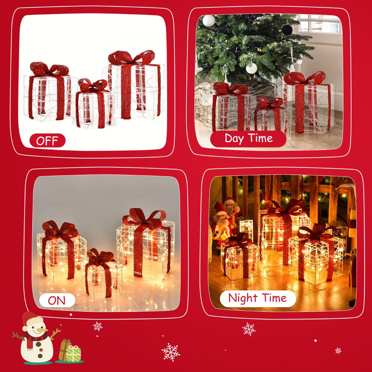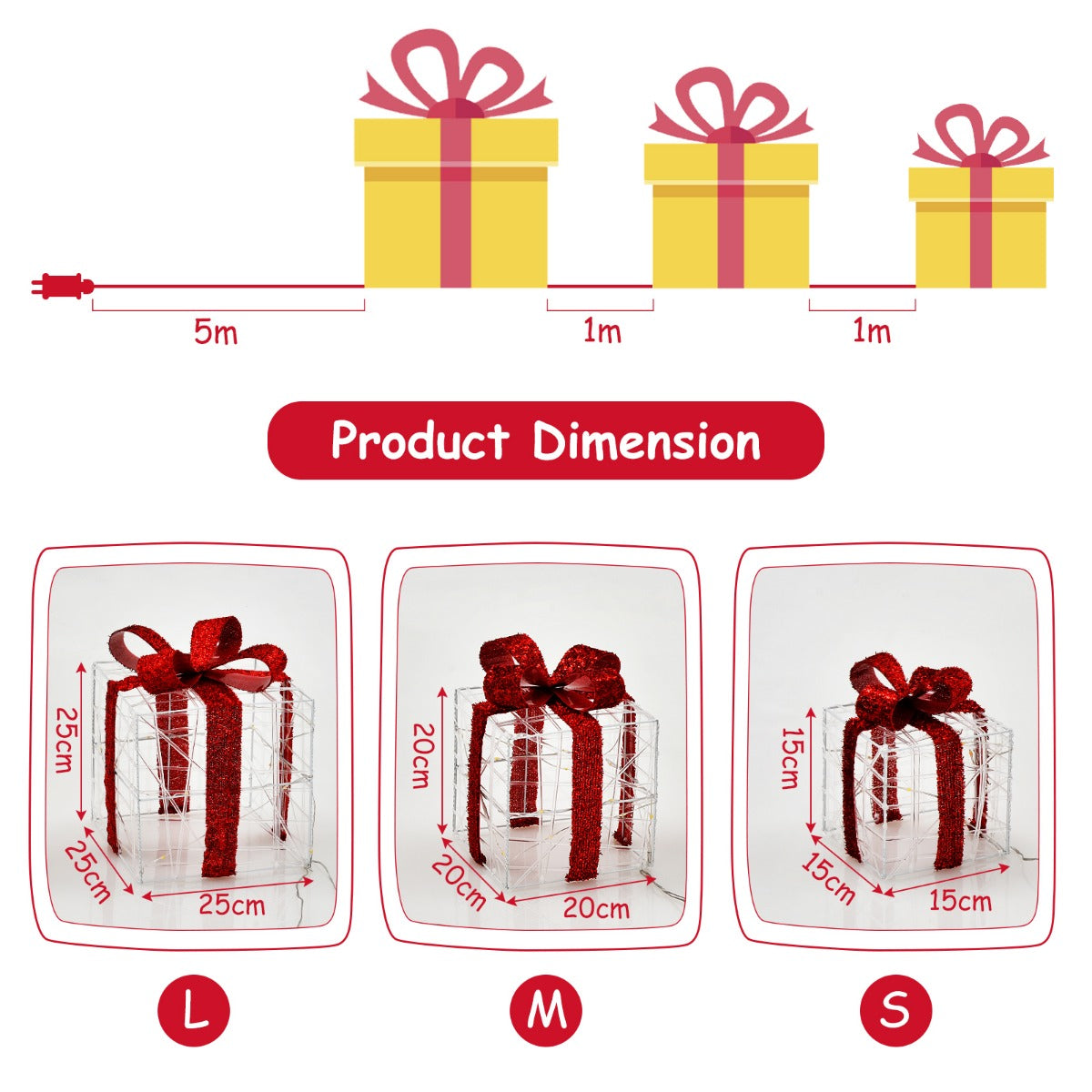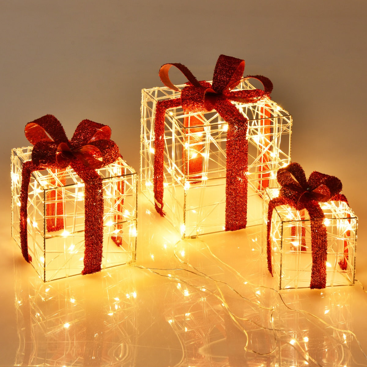 NNECW Set of 3 Christmas Lighted Gift Boxes with Waterproof Plug