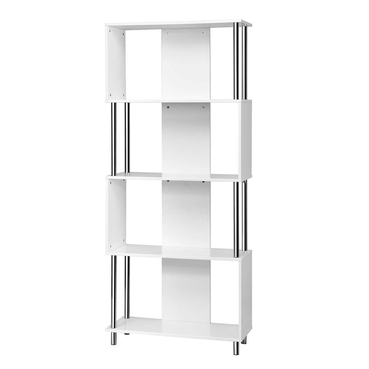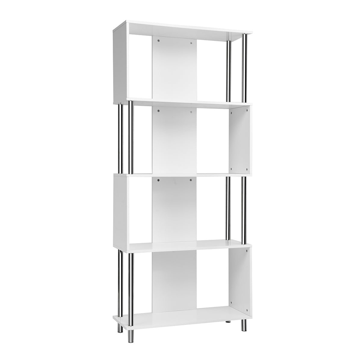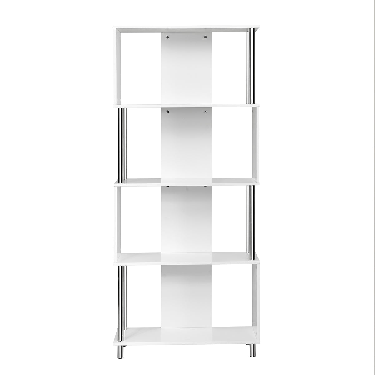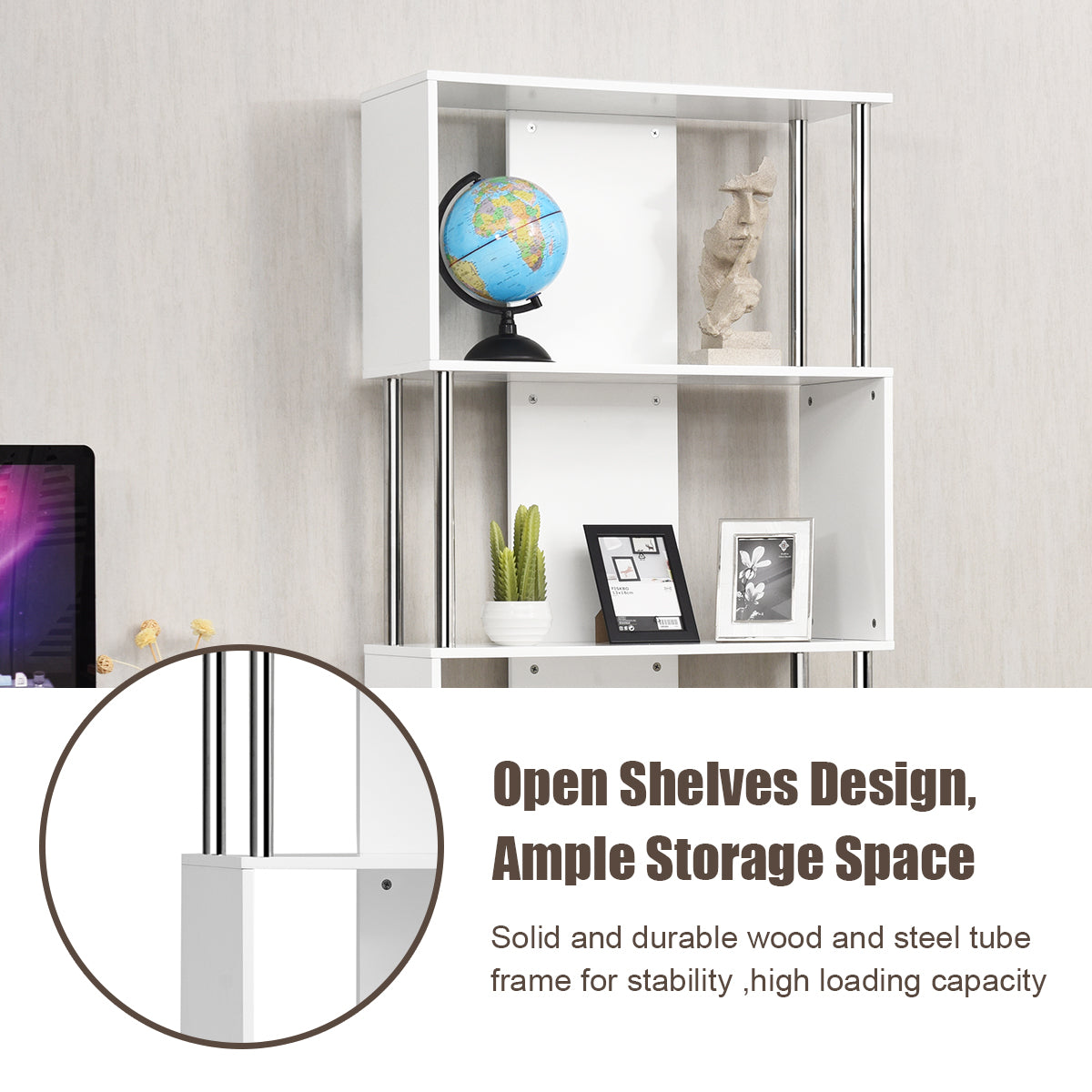 This attractive bookshelf combines wood and metal material artfully, show to an industrial character and artistic appeal feeling, pure white surface, the clean lines gives this bookcase a thoroughly modern fresh style. it meets the aesthetic of practicality and adds a lot of interest and particular charm to any room's interior. Snaking bookshelf with modern open concept design, four tiers large open shelf can display your books, CDs, DVDs, vases, photo frames, decorations and collectibles. It will be your best organizer to make your living room, bedroom, and office tidy, It is a good ornament that let your room full of fashion sense. Don’t hesitate to buy it now!