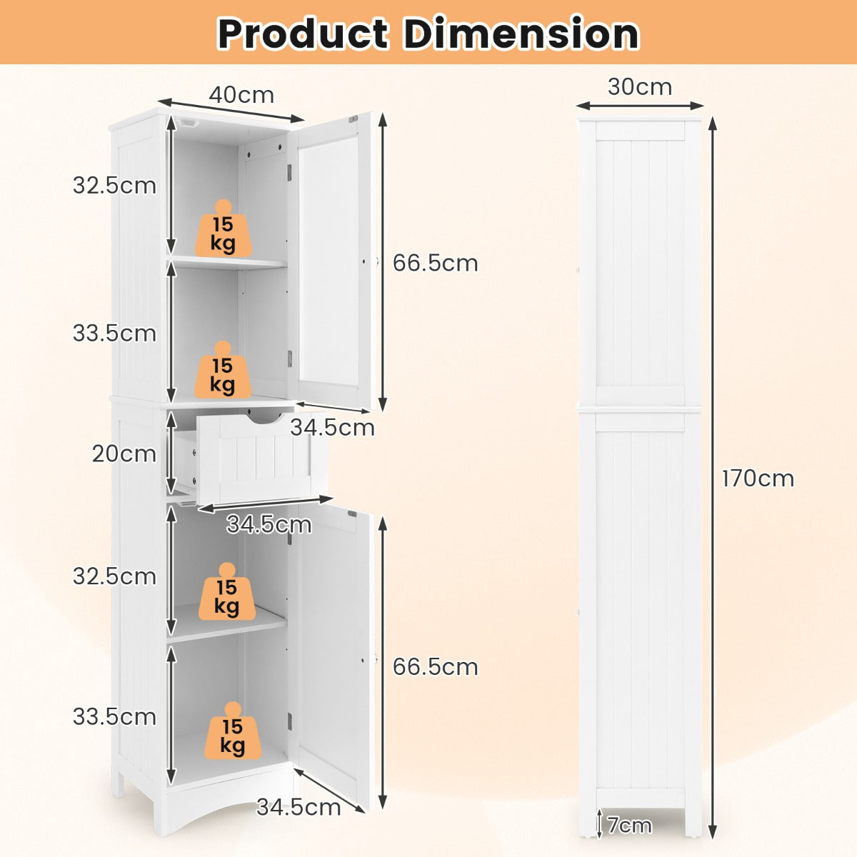 NNECW Tall Bathroom Storage Cabinet with 2 Doors & 1 Drawer
