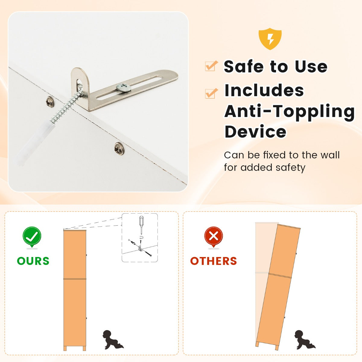 Sturdy Structure & Safe to Use: The bathroom storage cabinet is made of high-quality MDF material, which makes it sturdy enough for long time use. The frosted glass door adopts tempered glass for better security. Moreover, you can fix the storage cabinet to the wall using included an anti-toppling device for added safety.