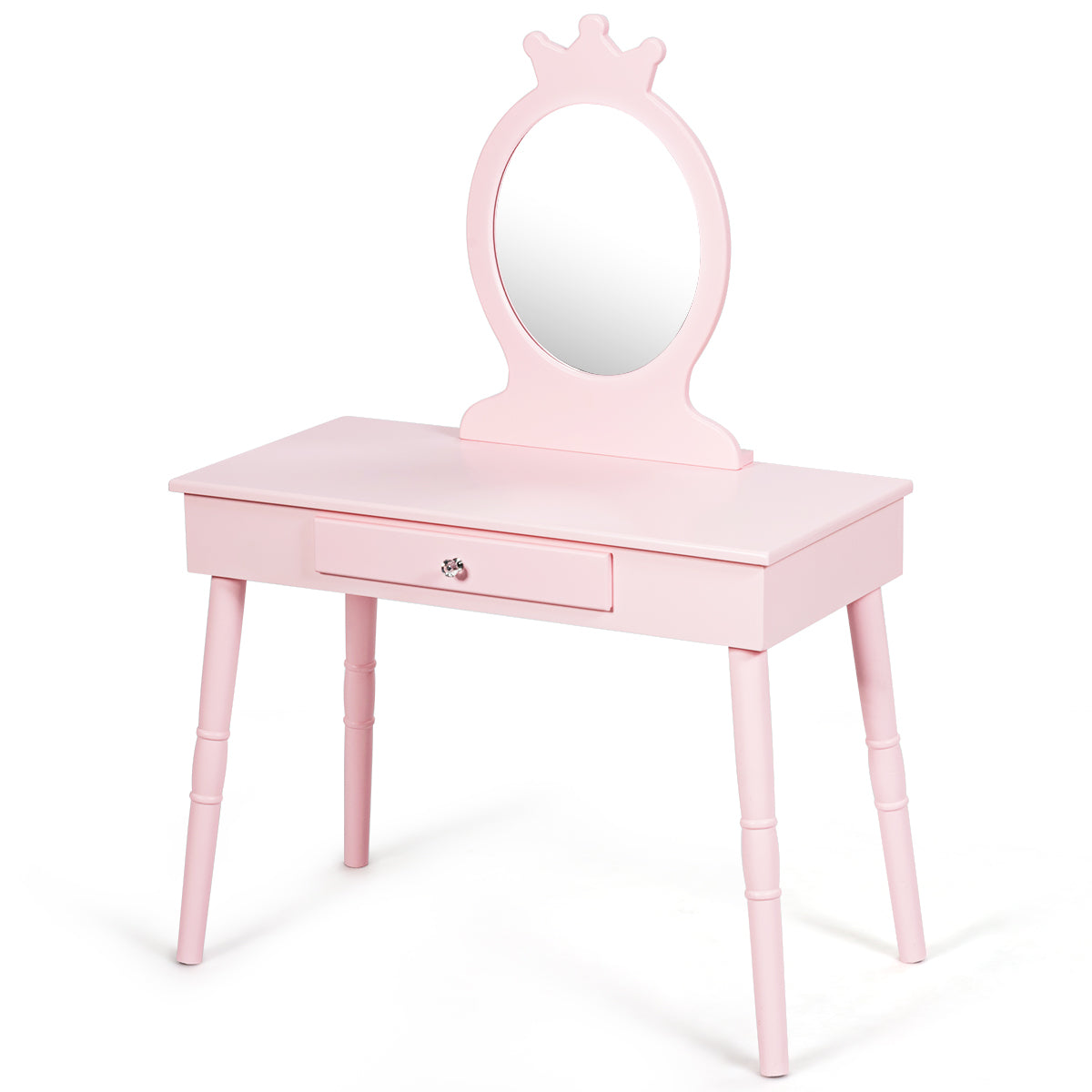 NNECW Vanity Makeup Table Set with Real Mirror for Little Girls Pink