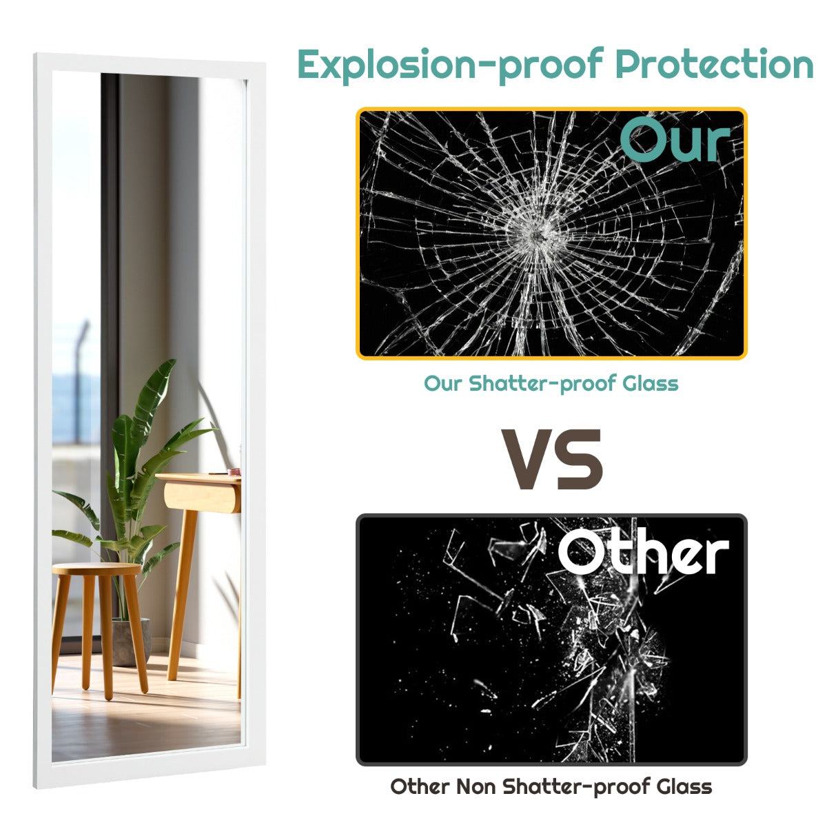 Space-saving Design: You can either hang this full-length mirror over the door with the hooks which have three adjustable heights, or you can mount it on the wall with the included screws the maximize space utilization without taking any floor space.
