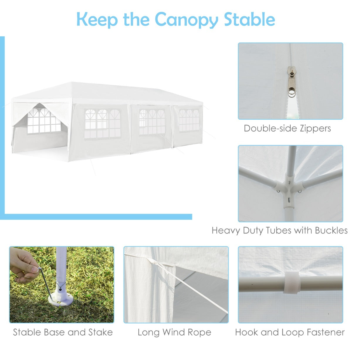 8 long ropes can hold the gazebo and add stability