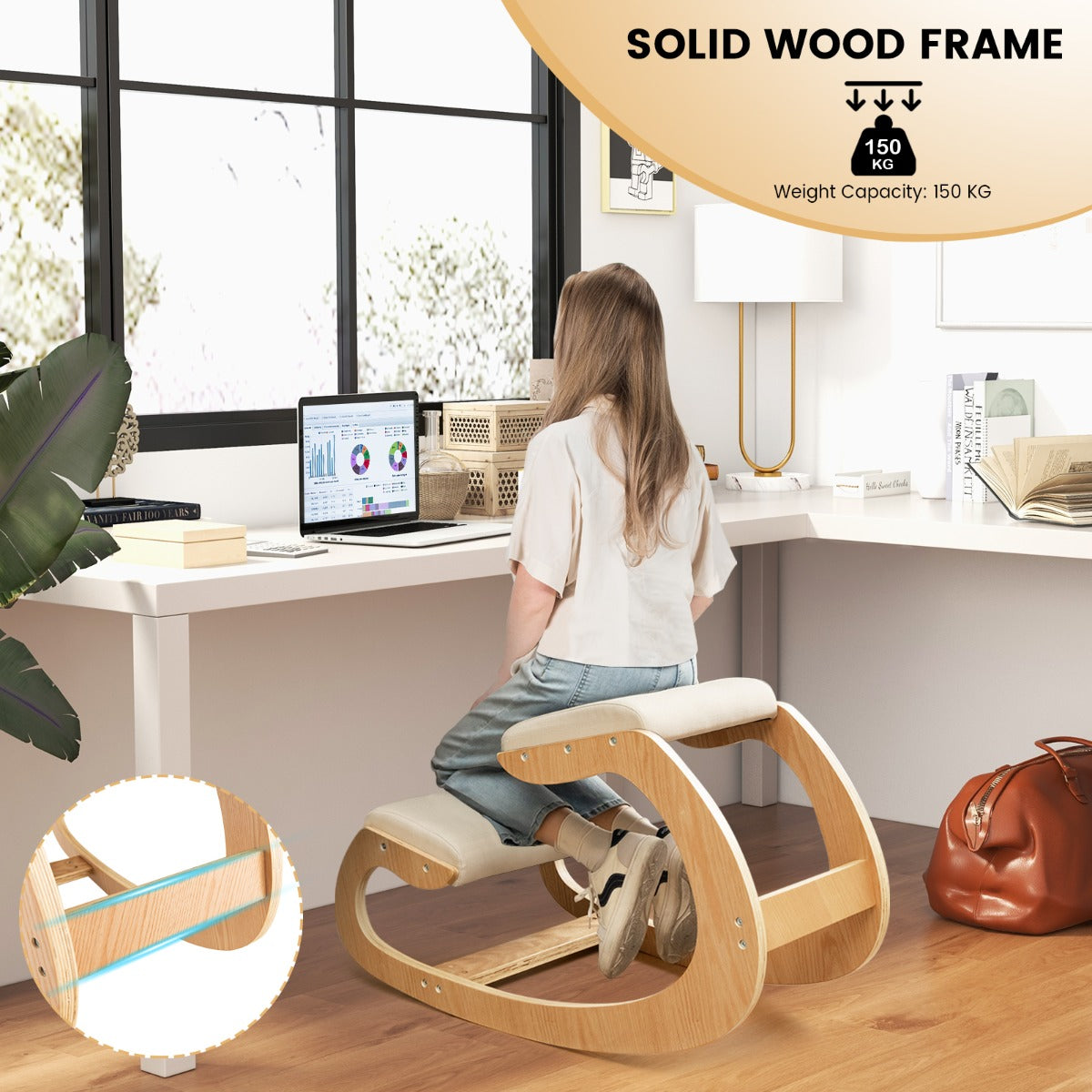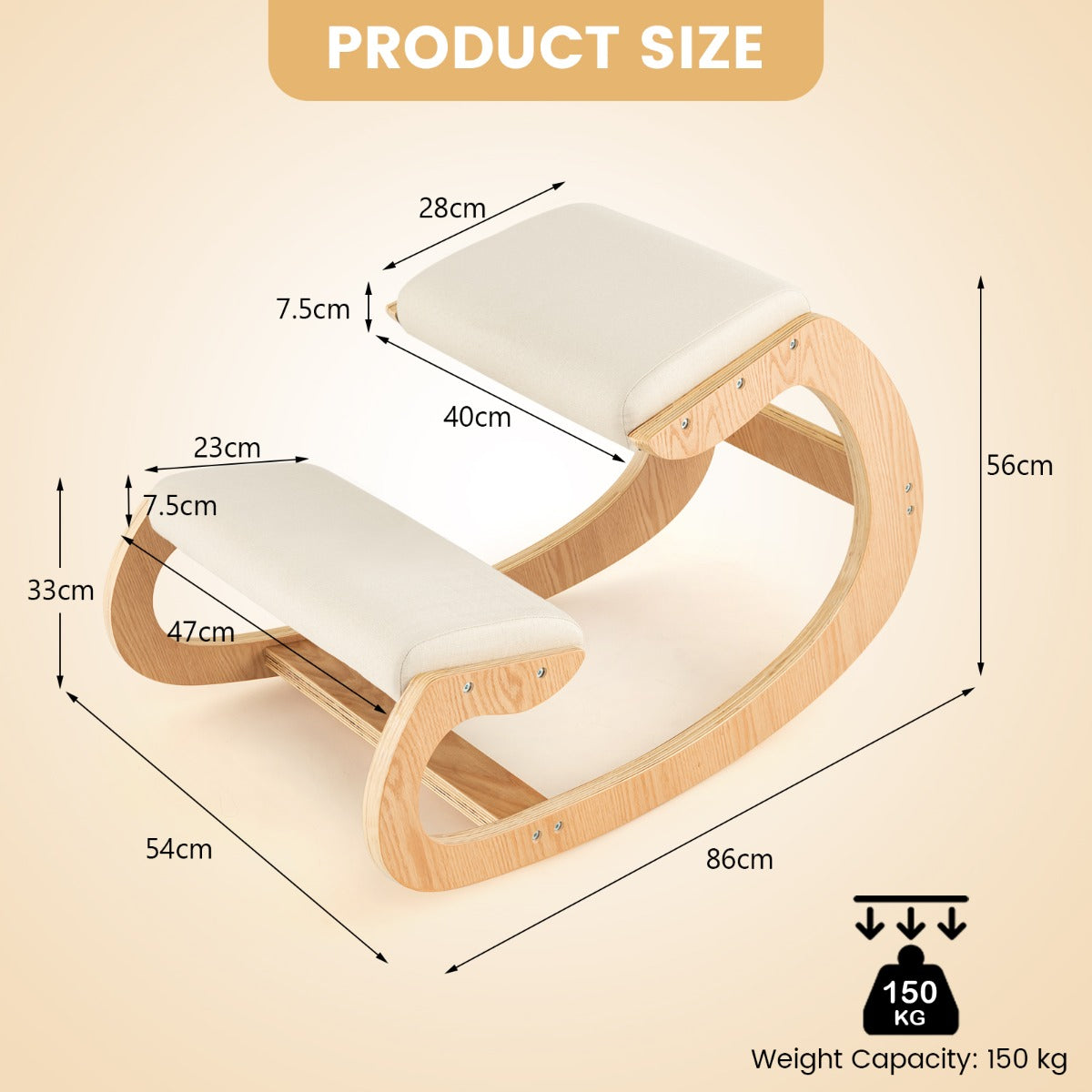 Such an ergonomic kneeling chair will surely make your life more comfortable! The rocking knee chair can keep your back upright and improve your poor sitting posture, helping you alleviate back fatigue after sedentary working. The curved base ensures smooth back-and-forth motion to improve concentration and relieve stress. For a better user experience, high-density sponge-padded seats and breathable polyester fabric upholstery offer a sense of comfort when sitting on the chair. Besides, a solid wood frame leaves you no worry about load-bearing capacity and reliability. Bring this ergonomic kneeling chair home which strikes the perfect balance between functionality and stylish design. BulletPoint: Ergonomic Kneeling Chair: The kneeling chair can keep your back in an aligned and upright posture, reducing pressure on the spine and relieving back and neck pain. In this way, the ergonomic kneel chair can improve your sitting posture and allow you to work in an active & healthy way. Curved Base for Flexible Rocking: The curved rocking base makes it flexible to sway the kneeling chair back and forth. More, the rocking motion increases blood circulation and reduces fatigue caused by long periods of sitting. Solid Wood Frame: Supported by a solid wood frame, the kneeling chair takes advantage of great sturdiness, lasting durability and 150 kg strong weight capacity. Besides, the solid connection can be seen in its premium hardware, which effectively gets rid of wobbling or tilting. Upholstered Seat for Comfort: The thick upholstered cushion is filled with a high-density sponge, providing you with a comfortable sitting experience. Plus wrapped in soft and breathable polyester fabric, the kneeling chair adds a sense of relaxation. Versatile Use and Easy to Assemble: This rocking posture chair combines aesthetic beauty with great practicality, making it ideal for home and office. By the way, all necessary accessories are tightly wrapped and given a number to simplify the assembly process. Features: Sitting on the kneeling chair to keep an upright posture Effectively relieve fatigue, reduce stress and alleviate back neck pain The rocker base keeps enhanced balance and avoids rollover protection Solid wood frame is not easy to crack and prevents uniform strength Thick sponge-padded seat for a comfortable sitting experience Polyester fabric upholstery with a skin-friendly touch and good softness Ideal for office workers, teenagers, students, etc Complete accessories and a clear user guide for easy assembly Specifications: Colour: Black/Beige Material: Solid Wood, Sponge, Polyester Fabric Overall Dimension: 54 x 86 x 56 cm(L x W x H) Dimension of Seat Cushion: 40 x 28 x 7.5 cm(L x W x H) Dimension of Knee Cushion: 47 x 23 x 7.5 cm(L x W x H) Height from Knee Cushion to Ground: 33 cm Net Weight: 8 kg Weight Capacity: 150 kg Package Includes: 1 x Kneeling Chair 1 x User Guide Box Qty:1(May vary by batch)