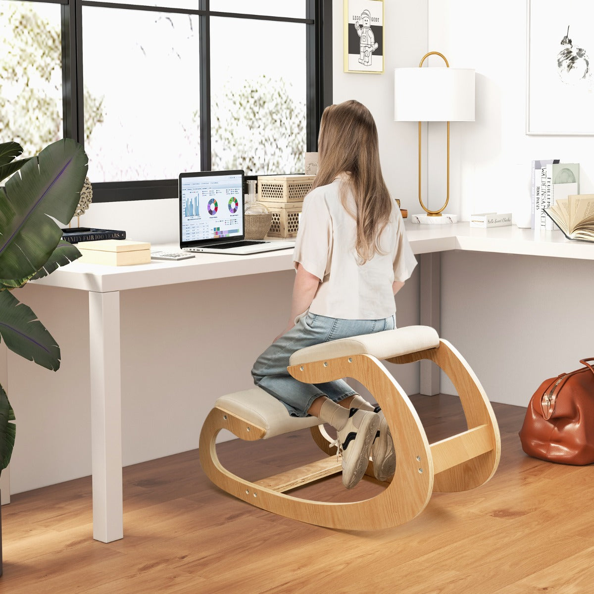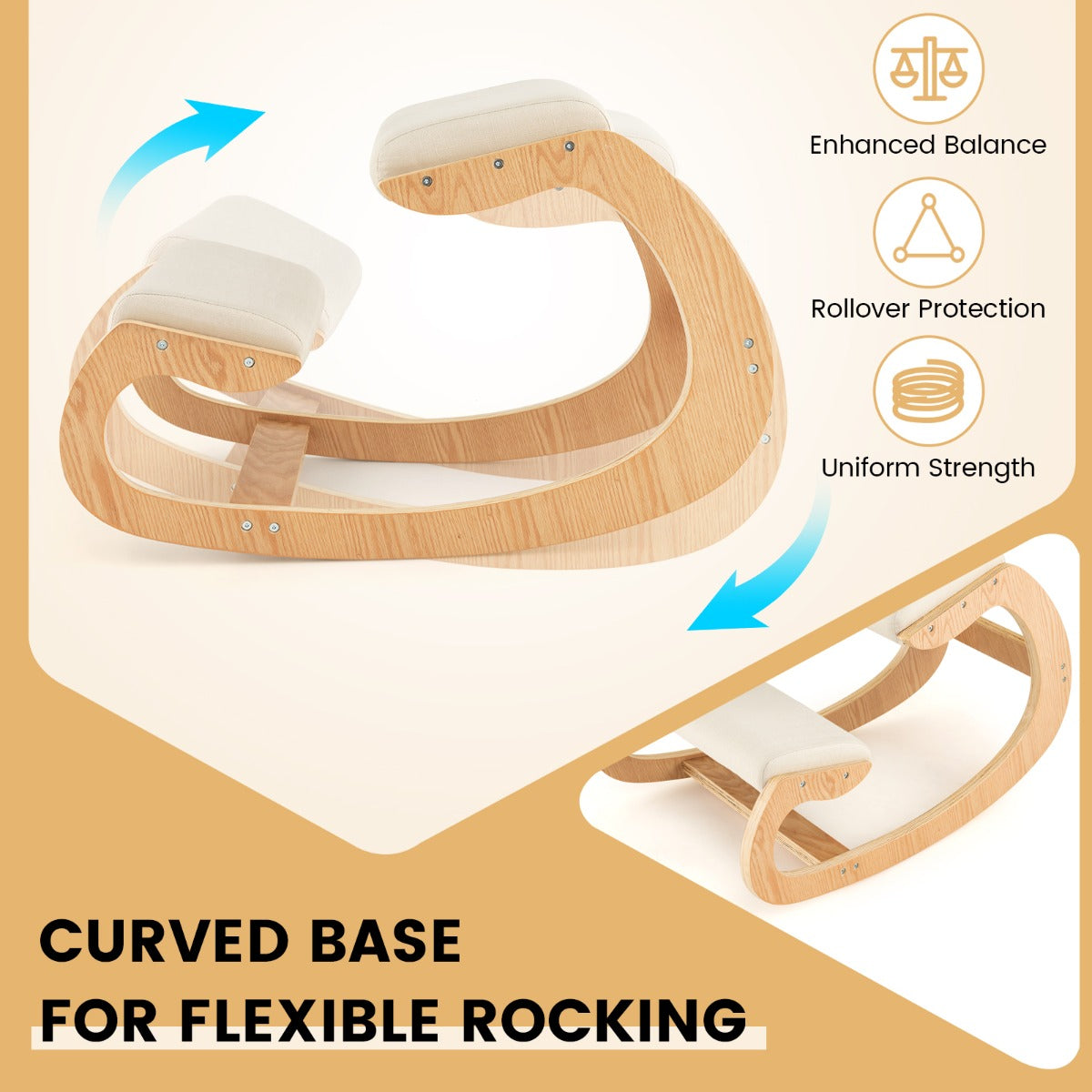 NNECW Wood Rocking Posture Chair with Soft Cushion-Beige