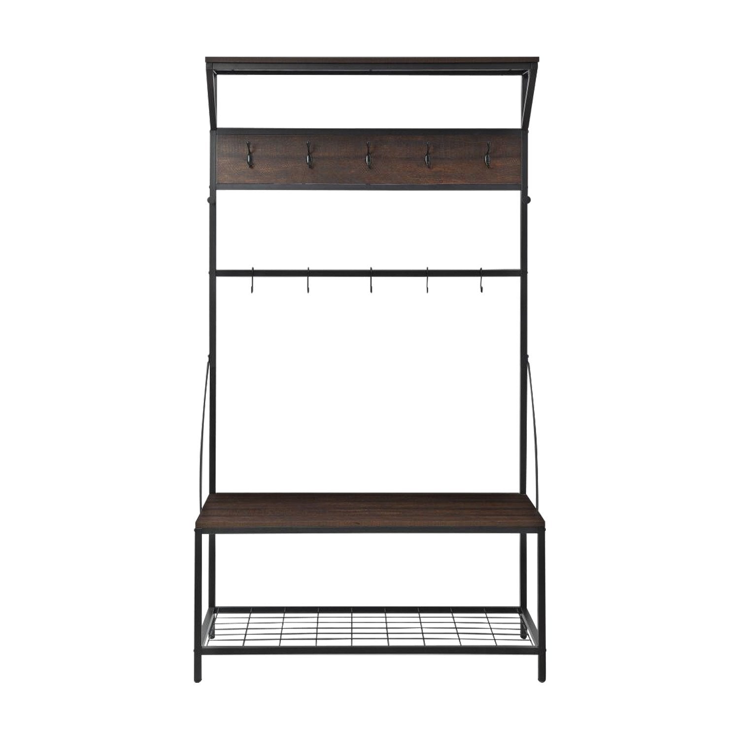 This hall tree boasts a robust metal frame, providing a strong foundation for reliable and long-lasting use. The metal construction ensures stability, making it perfect for accommodating various items without compromising its structural integrity.