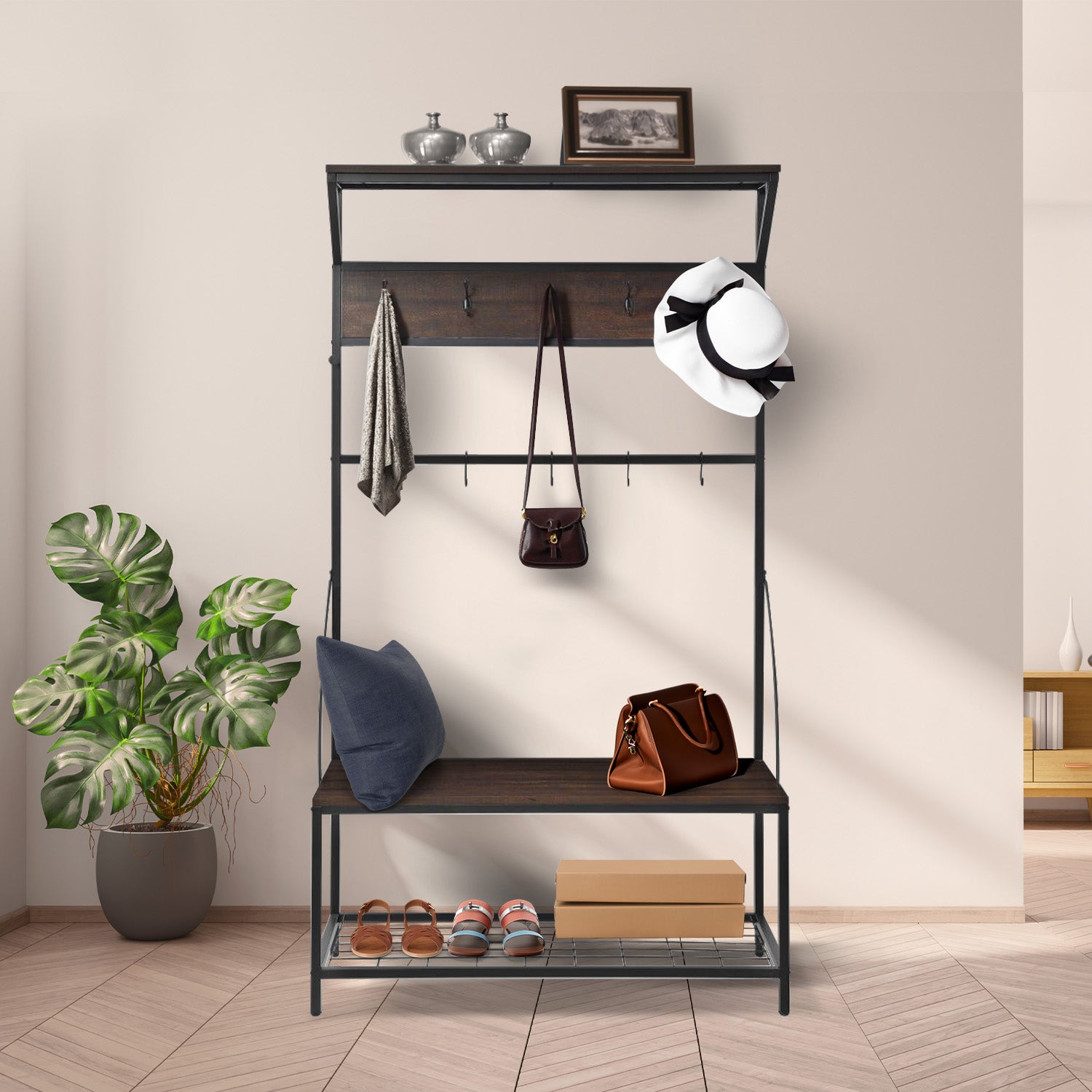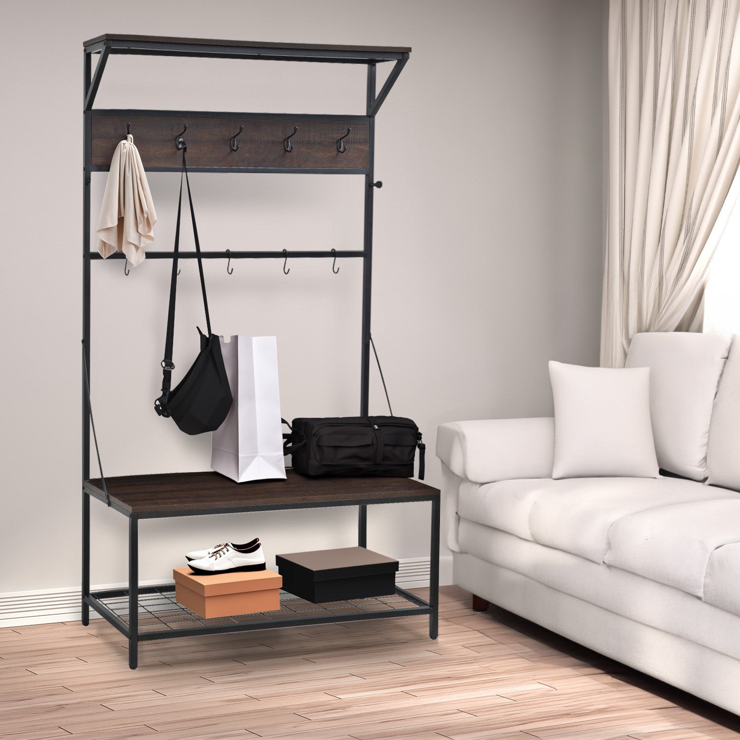 - 4-in-1 hall tree coat rack, display shelf, bench and shoe rack in one
