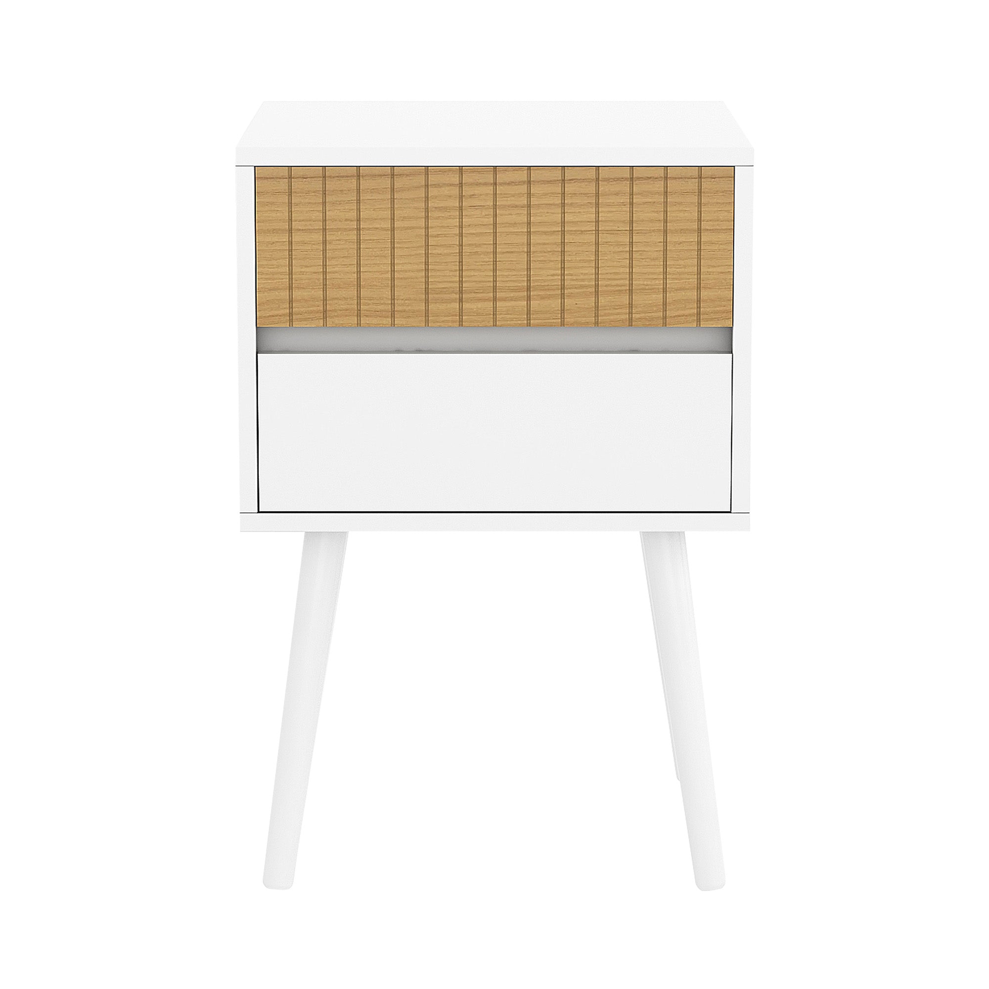 NNEDPE Clio Bedside Table Night Stand - White/Natural