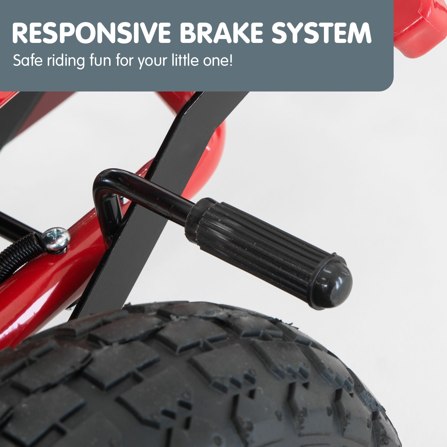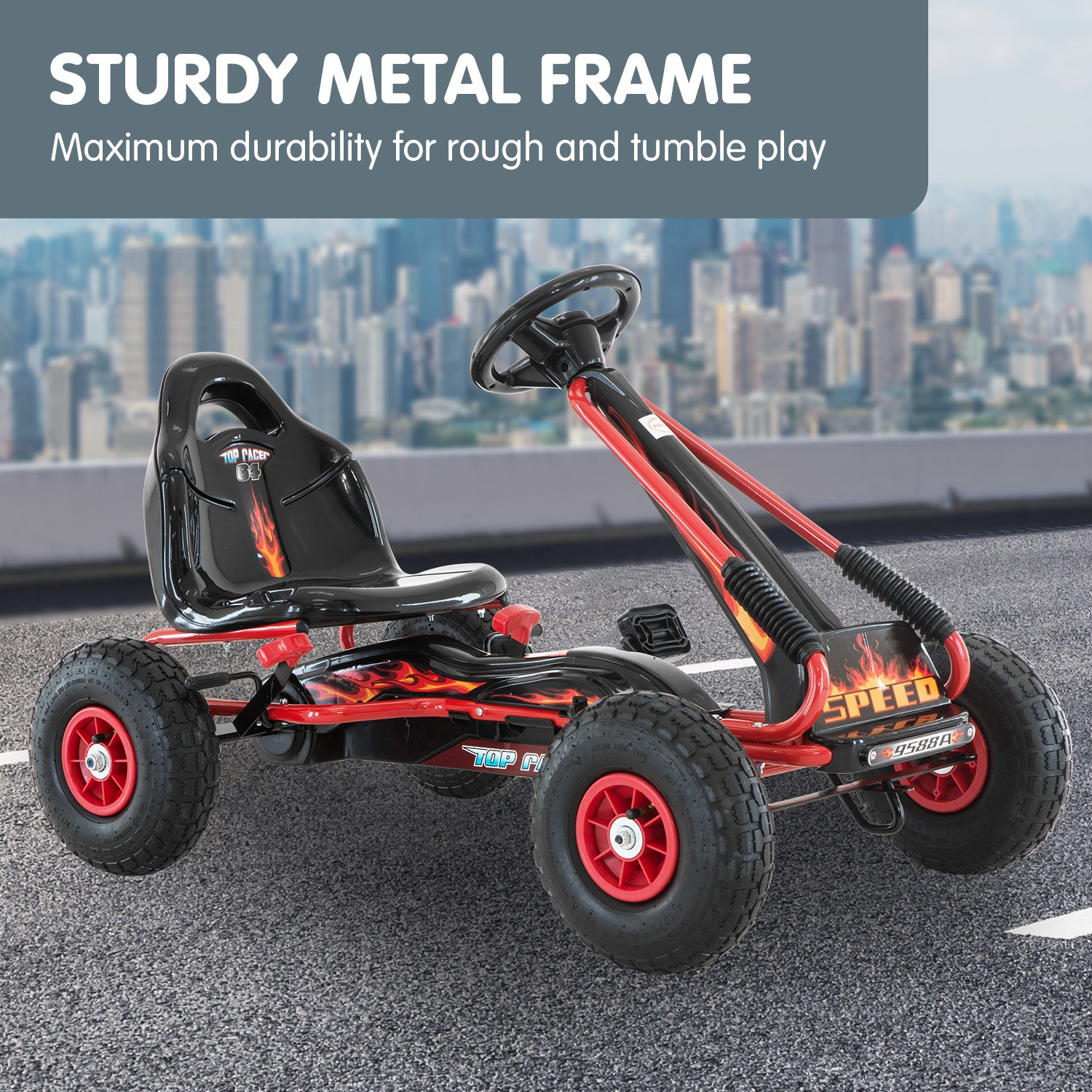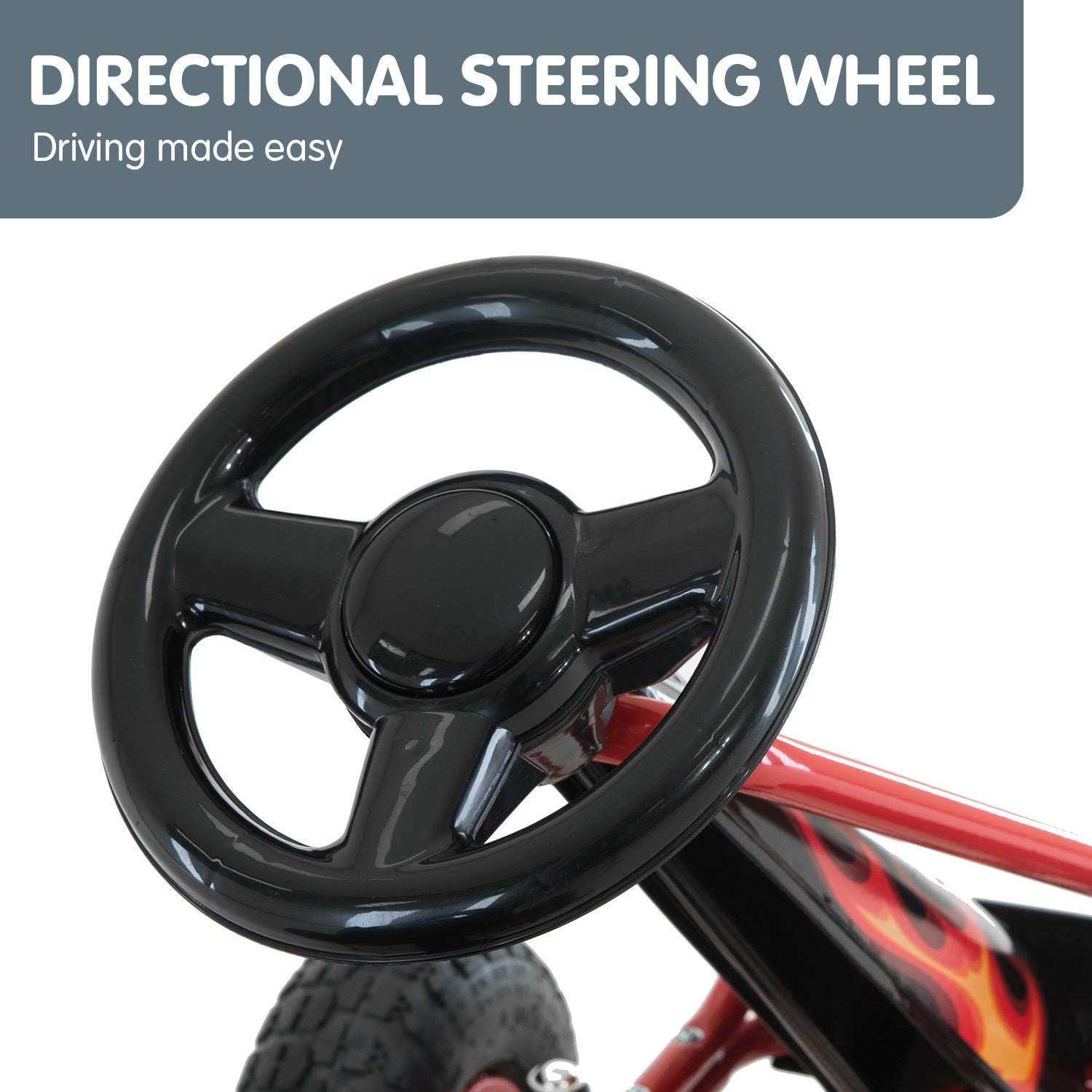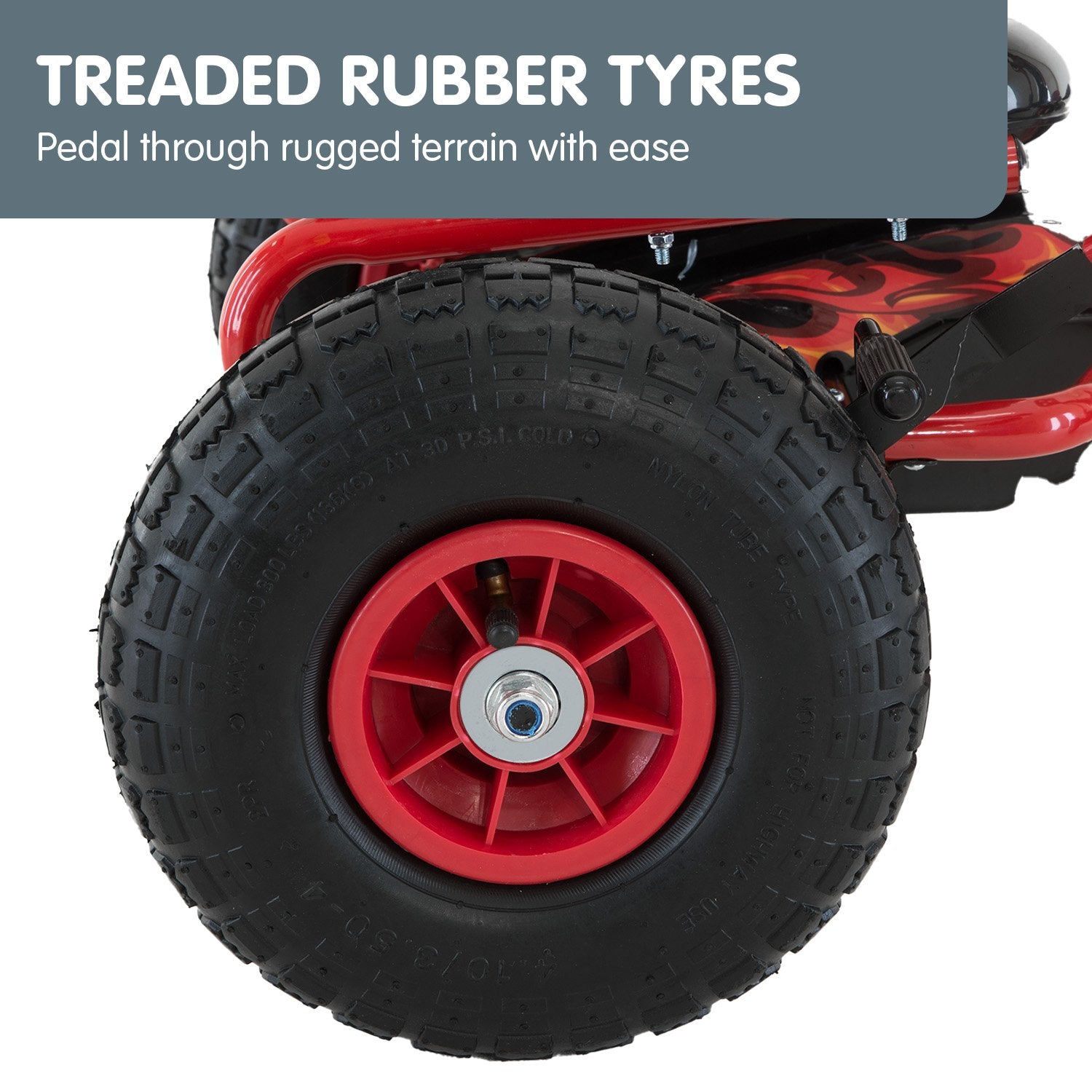 Take your kids' outdoor activity to the next level with this G95 pedal-powered go kart! With its contemporary design and cool flame decals, your little one will ride away with flair.
