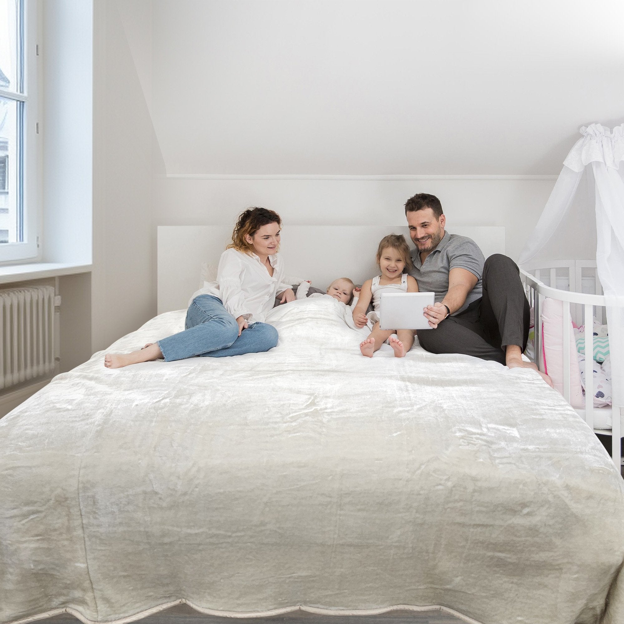 With its generous dimensions of 305 x 305cm, it offers vast coverage while keeping you warm. Perfect for cosying up on cold nights, it one-ups relaxation with its plush feel and chic design. An excellent choice for bringing elegance and unparalleled cosiness to your living space.