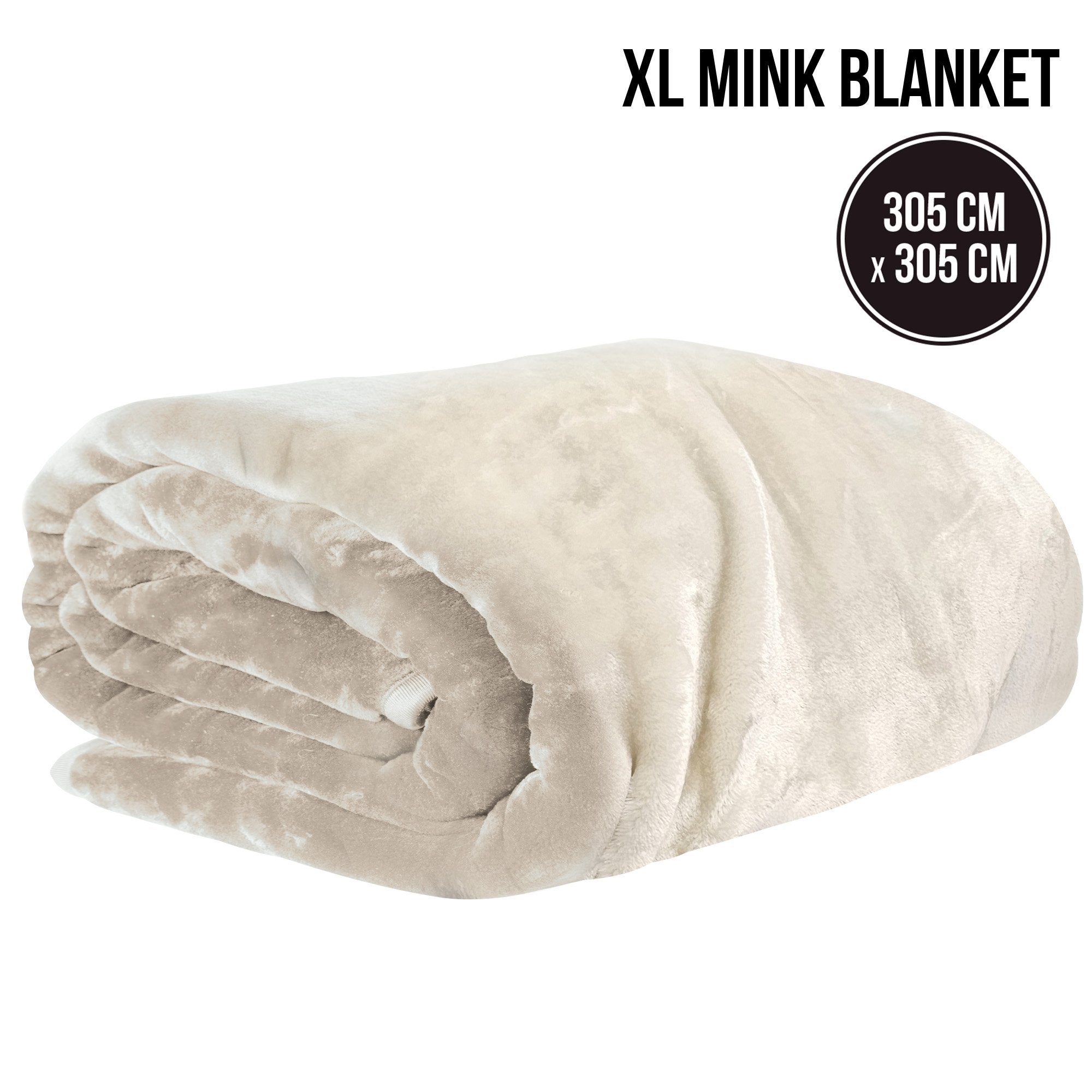 NNEDPE XL Double-Sided Oversized Faux Mink Blanket 305x305cm Beige