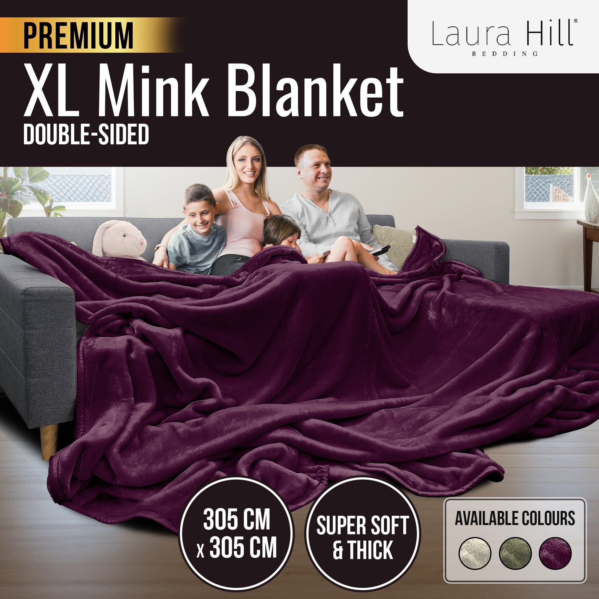 NNEDPE XL Double-Sided Oversized Faux Mink Blanket 305x305cm Purple