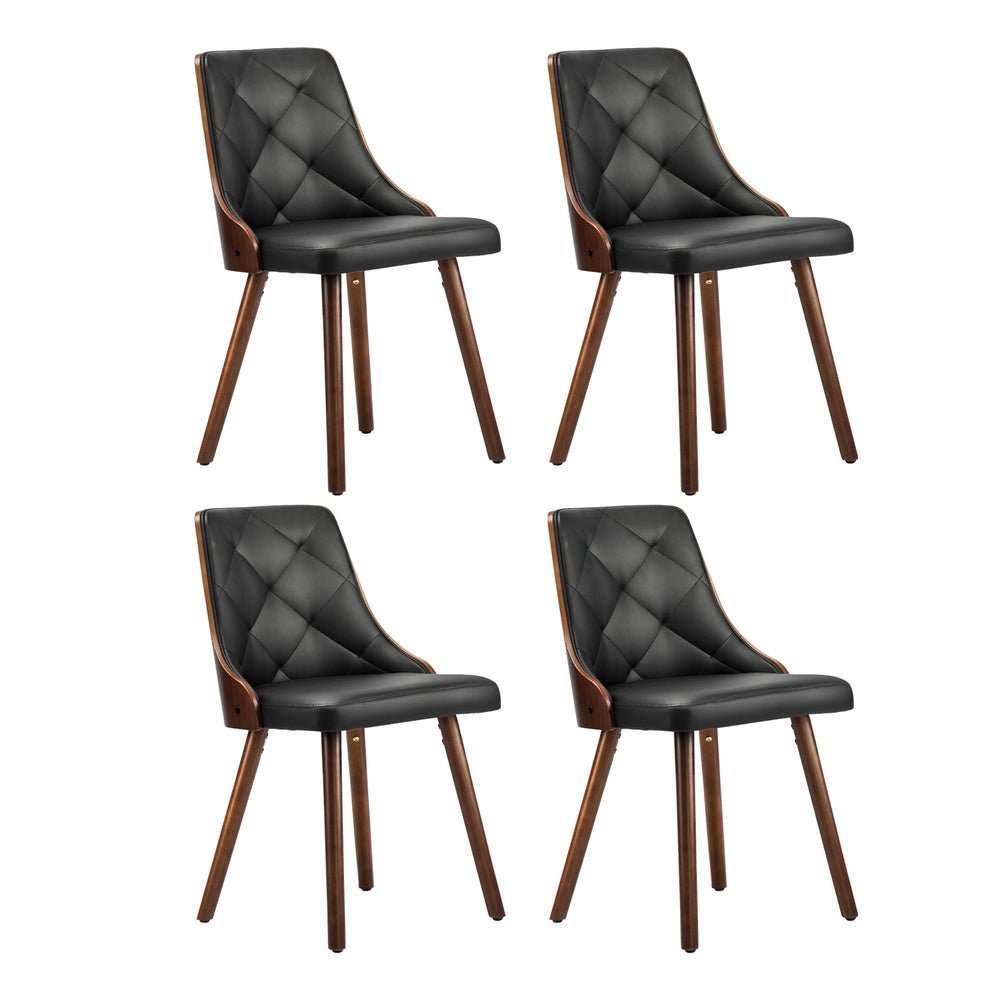 NNEED 4x Wooden Dining Chairs Faux Leather Padded Black