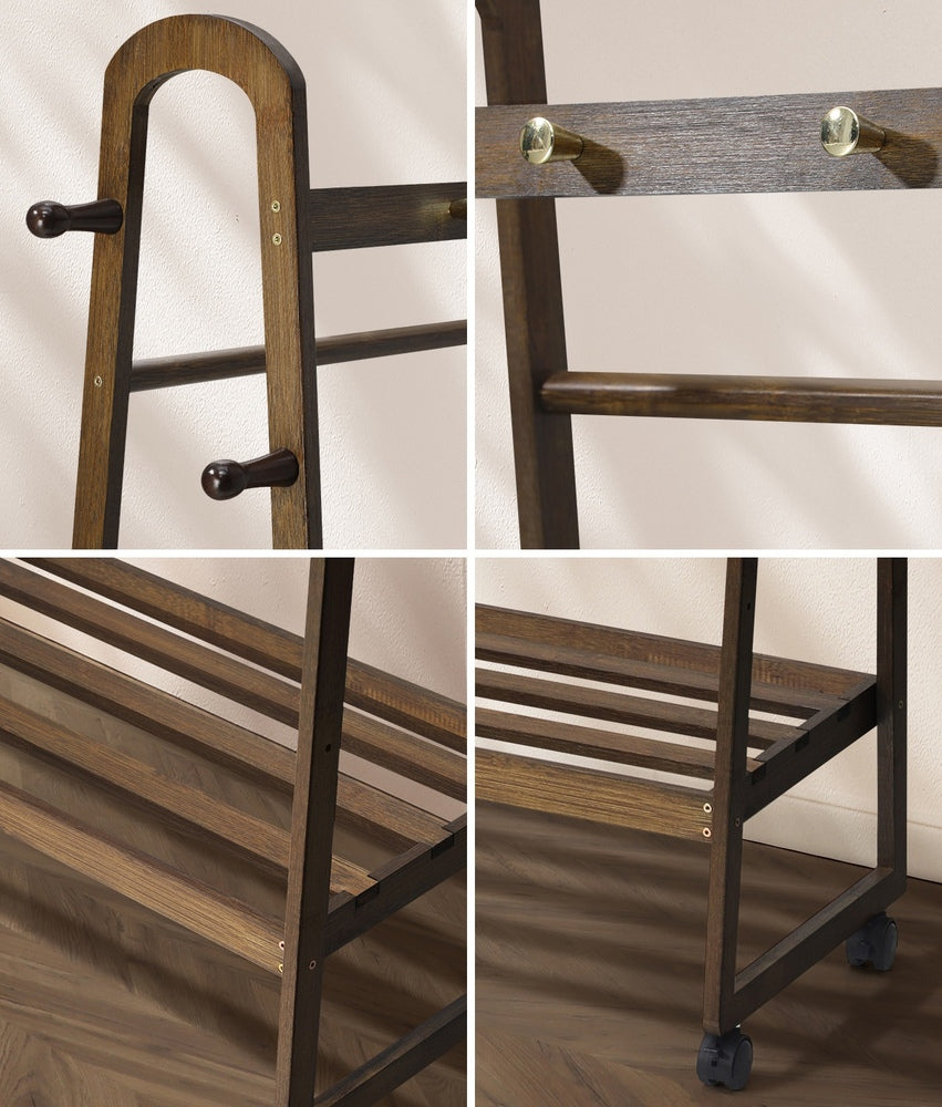 NNEED Clothes Rack Hanging Rail Bamboo Portable Wheels