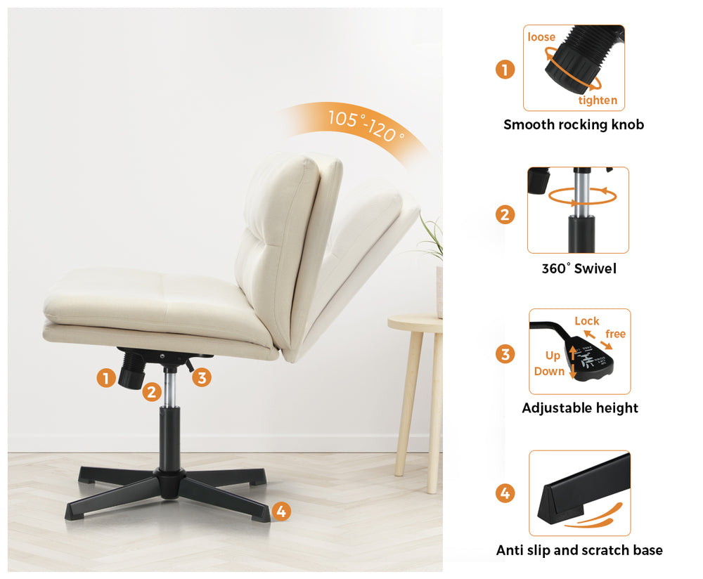 NNEED Mid Back Armless Office Chair Wide Seat Linen Beige