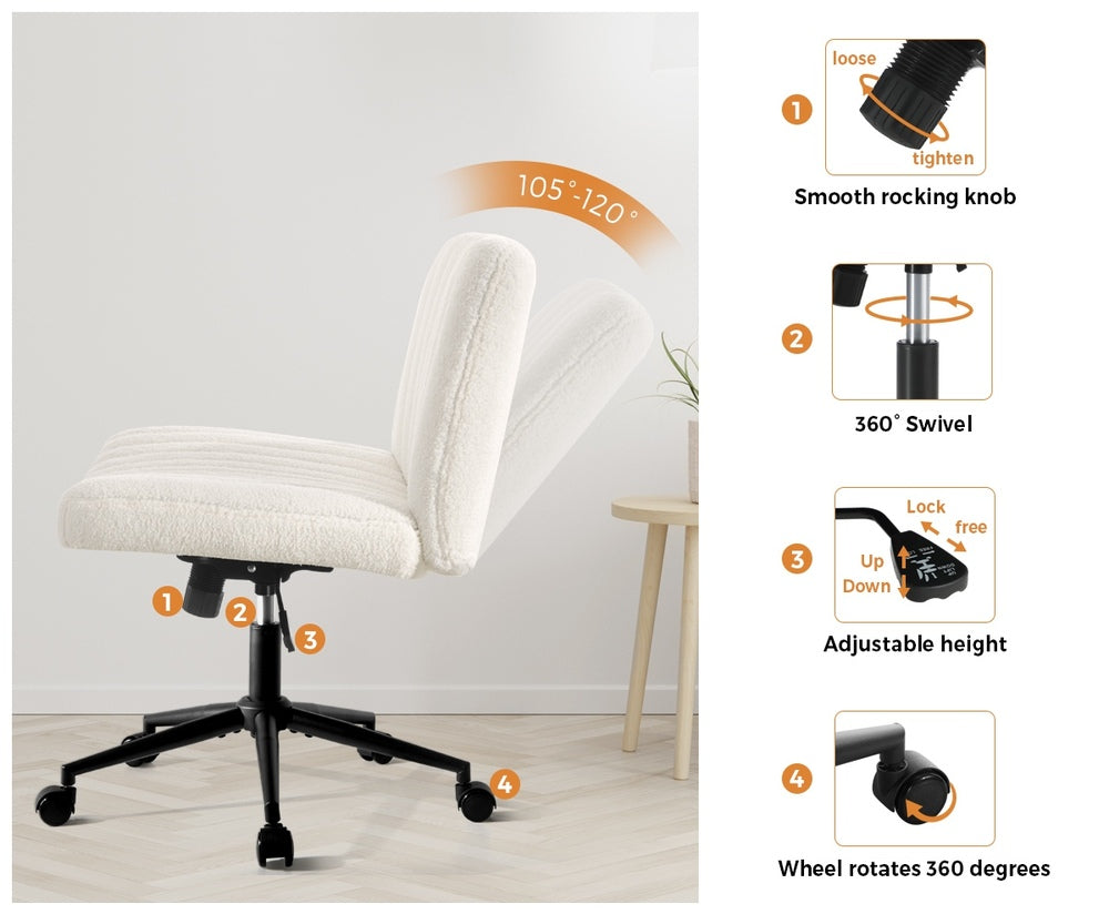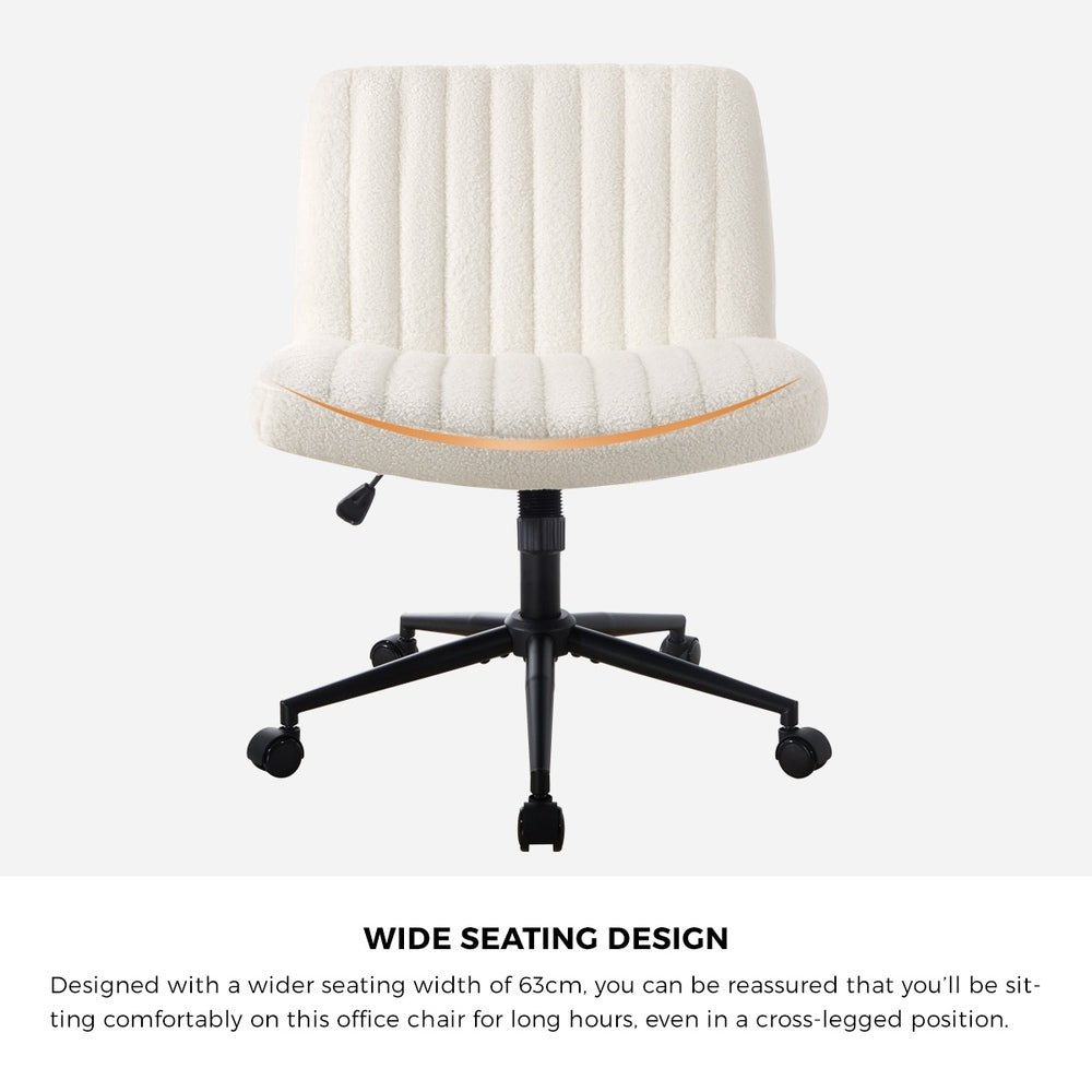 NNEED Mid Back Office Chair Wide Seat with Wheels Sherpa White